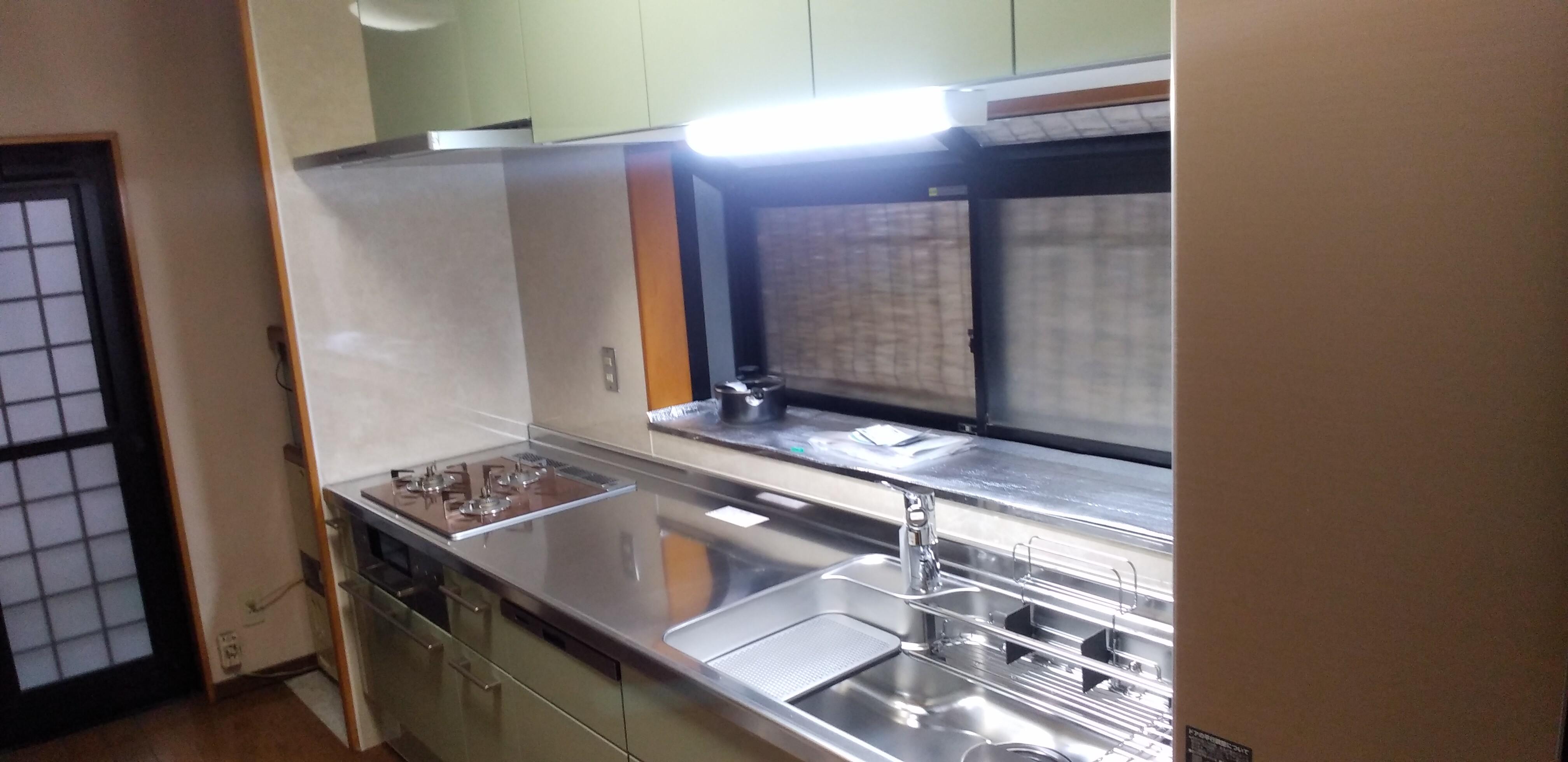 キッチン改修工事を行いました。 リシェルの水栓は浄水も使える、オールインワン浄水栓。 美しく、使いやすく。スタイリッシュなフォルムに、多彩な機能を搭載しました。プッシュとダイヤルの簡単操作で整流とシャワー、原水と浄水の切り替えが可能です。採用された水栓は1度に広い面積を洗い流せるひろびろシャワータイプで、従来よりも洗い物の時間を短縮できます。
