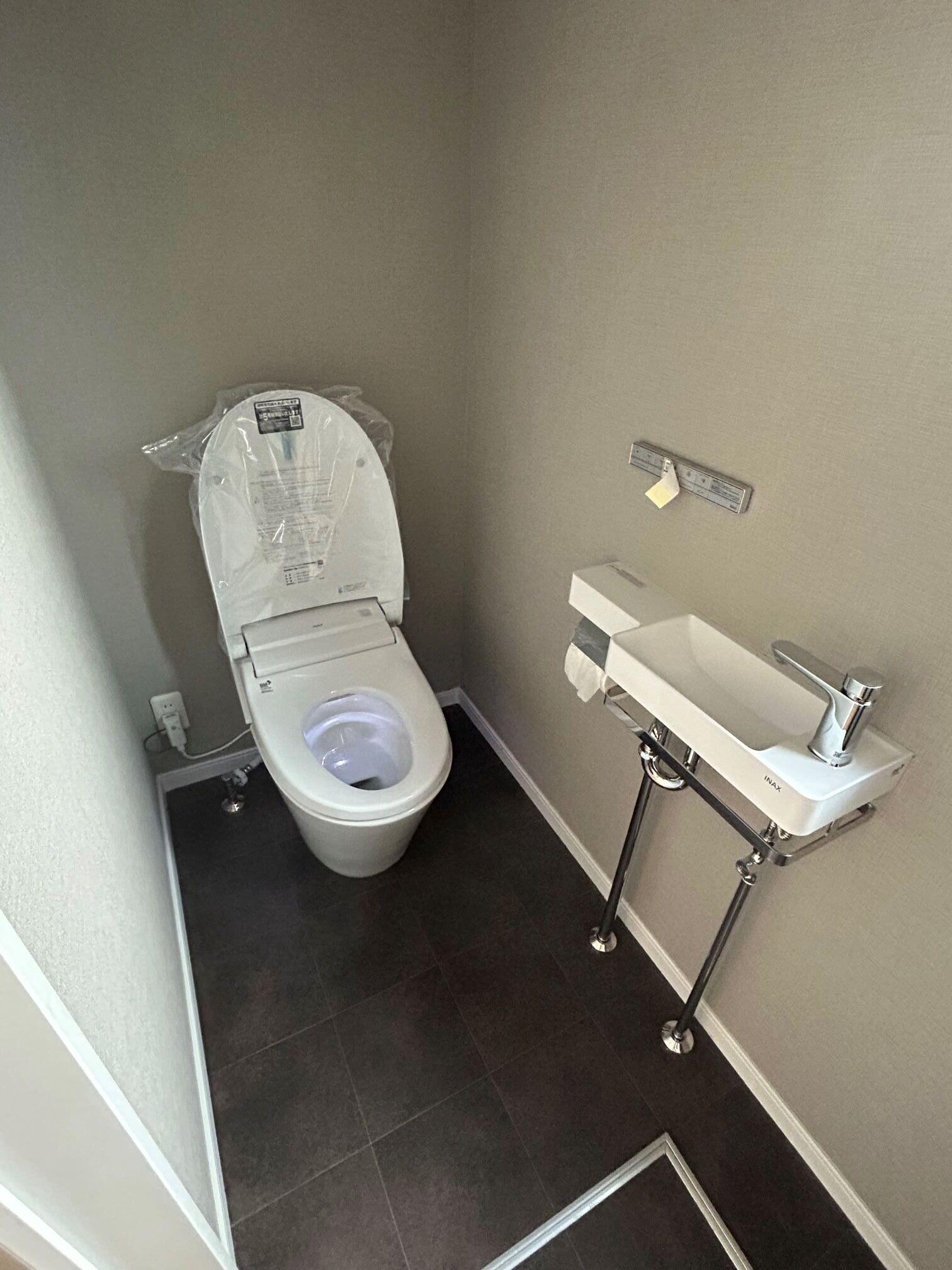 画像はありませんが元々便座の向かい側にあった手洗い場は撤去し、少し壁を作って収納空間にしています。