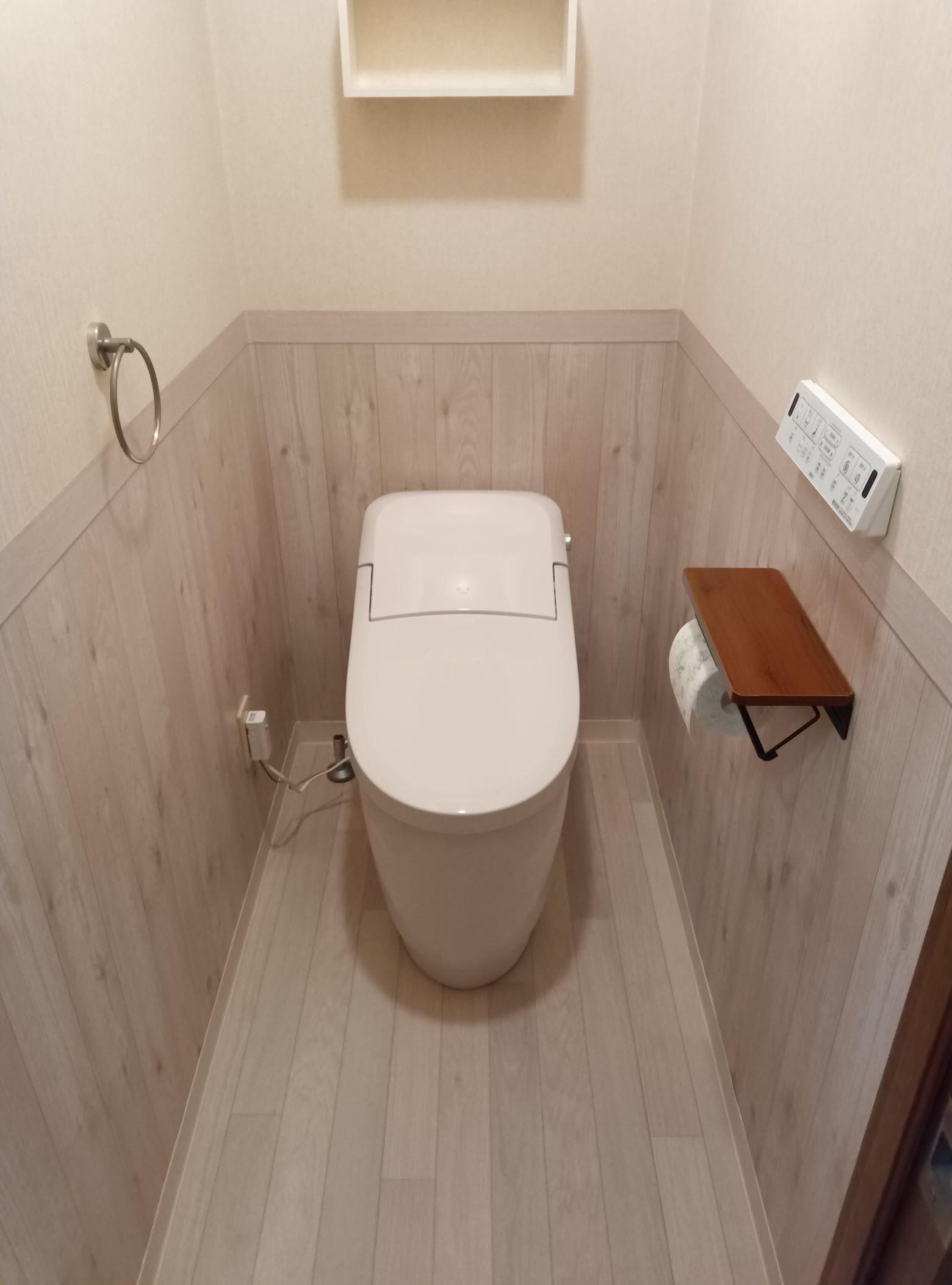 トイレの改修工事を行いました。 リクシル商品プレアスLSを採用いただきました。 タンクレスになり空間が広がりスッキリした印象になりました。