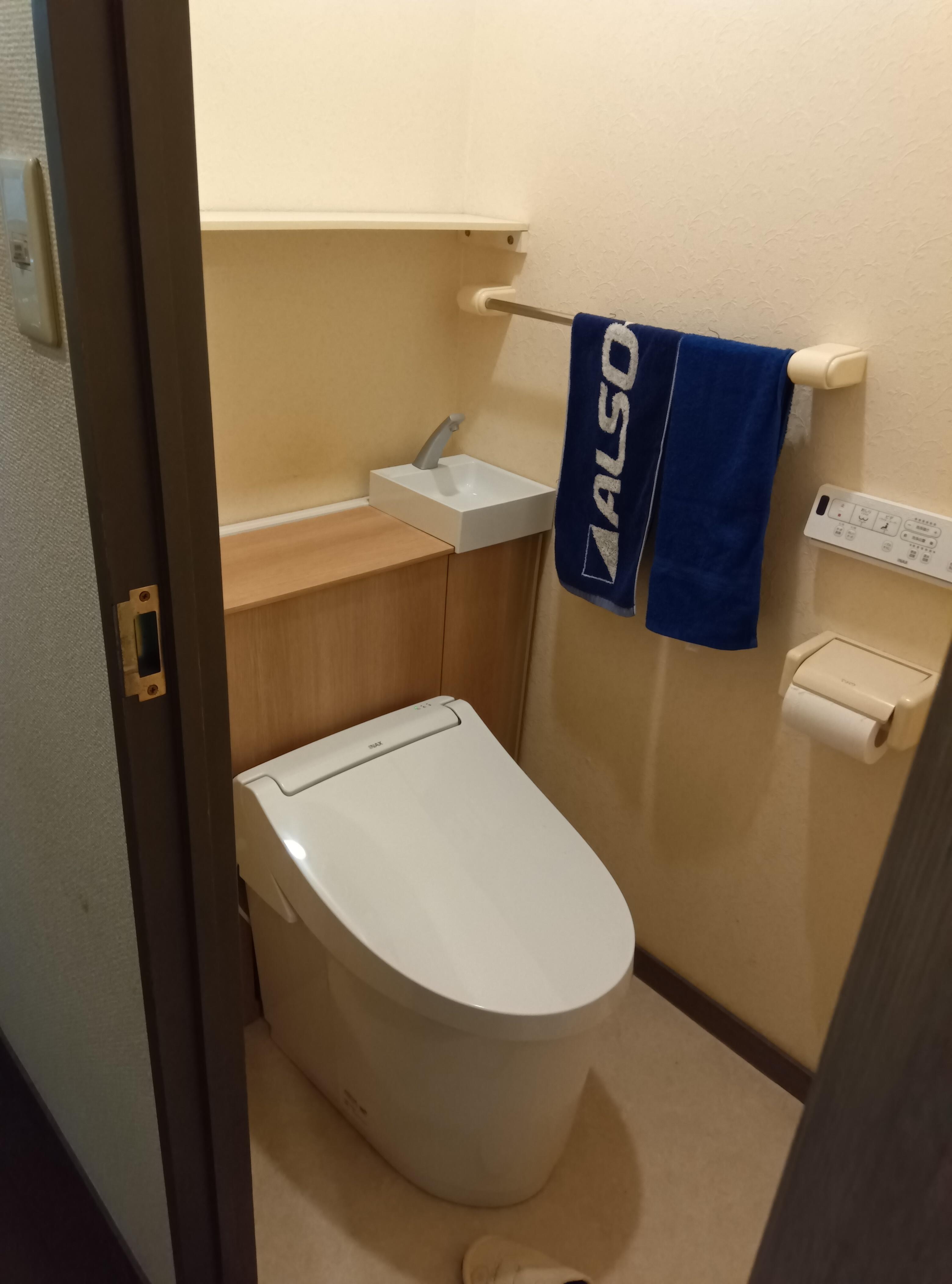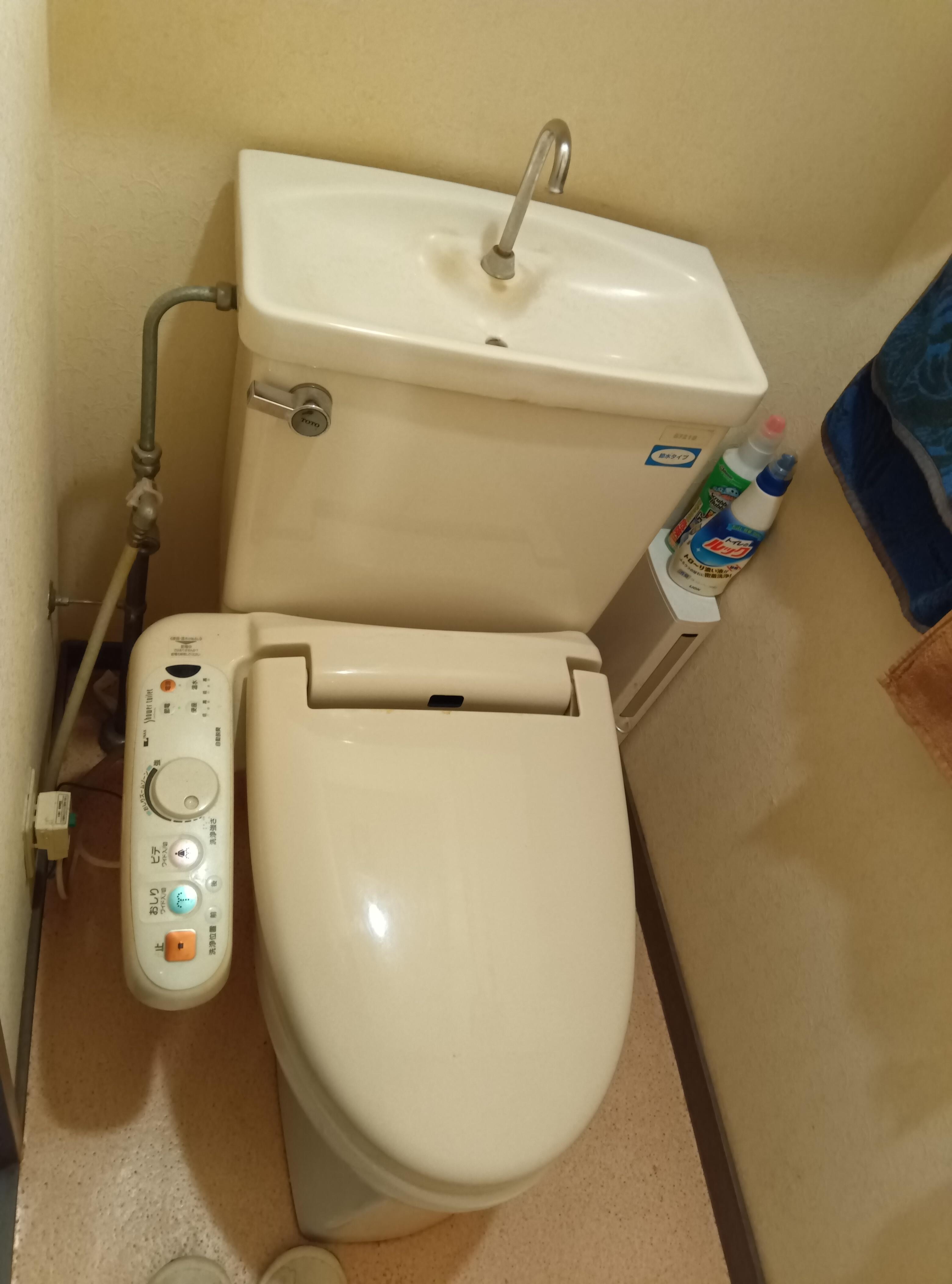 給水管やコードなどをキャビネット内に隠す”なんちゃってタンクレス”です。