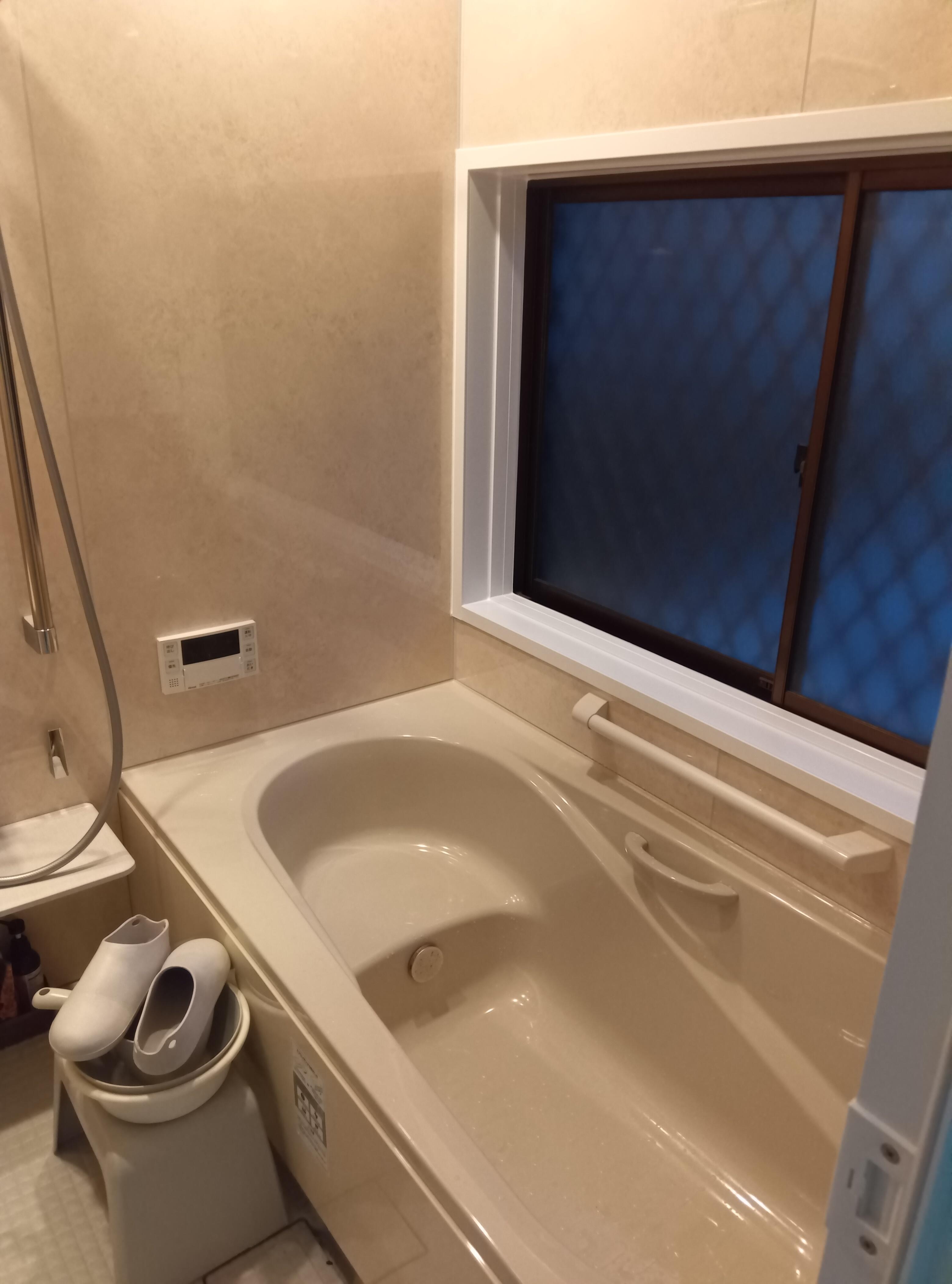 毎日のバスタイムを、もっと快適に。 LIXIL「リデアMタイプ」で浴室を一新しました。 暖かみのあるベージュカラーで、落ち着きのある空間に。 お手入れしやすい壁パネルと、使いやすい手すり付きで、安心・快適な浴室に仕上がっています。