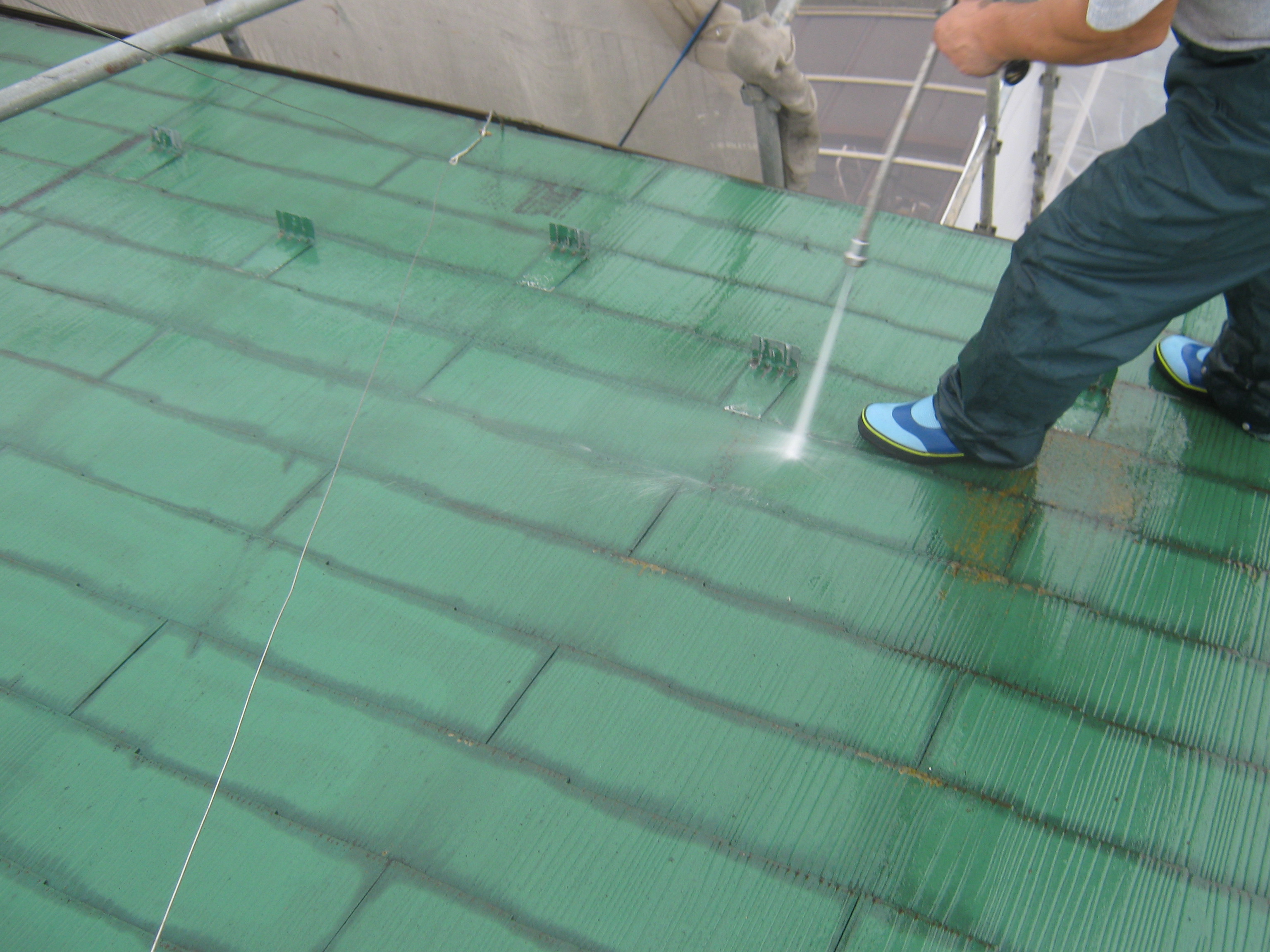 屋根洗浄後、シーラー(下地)を塗っていきます。