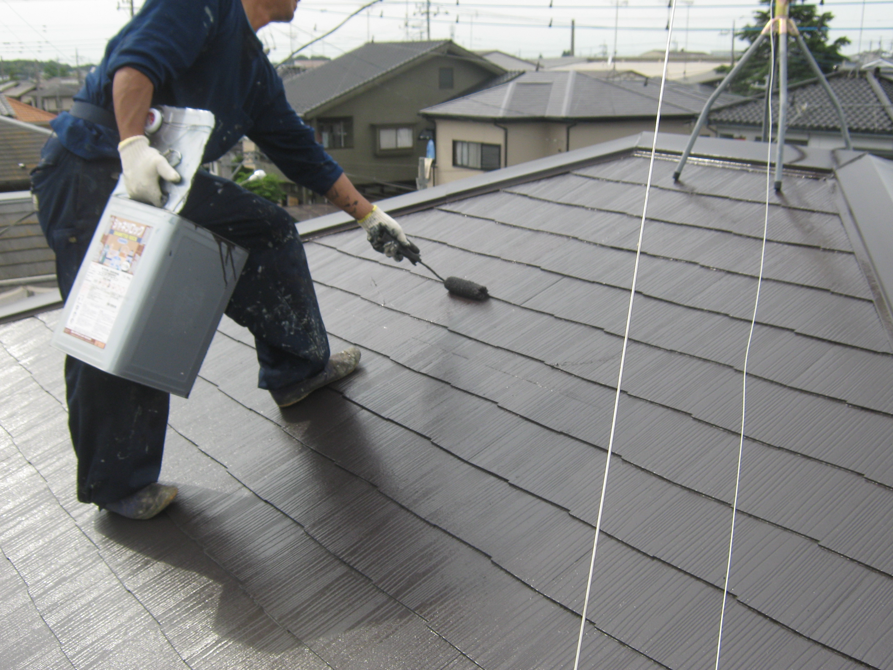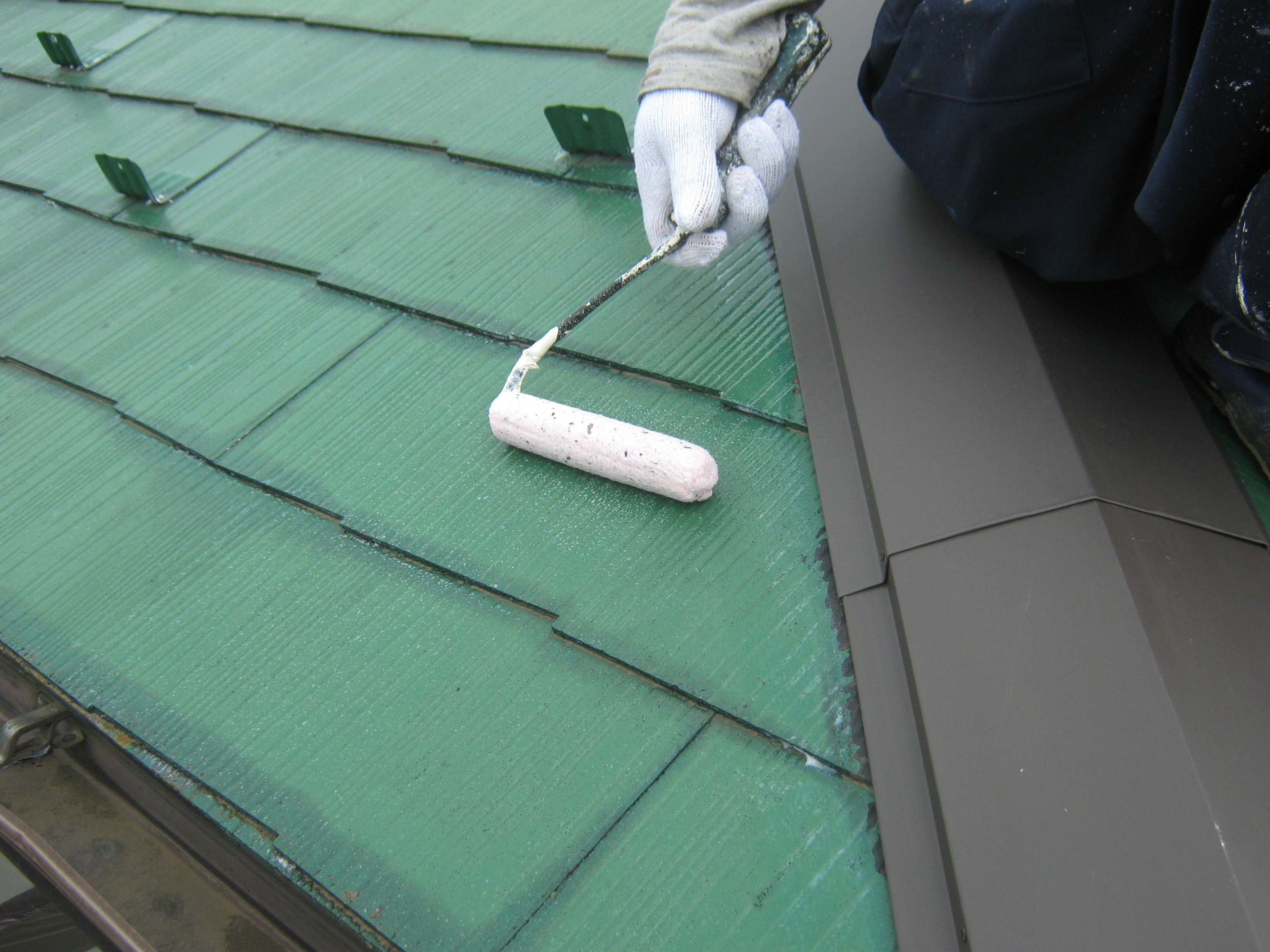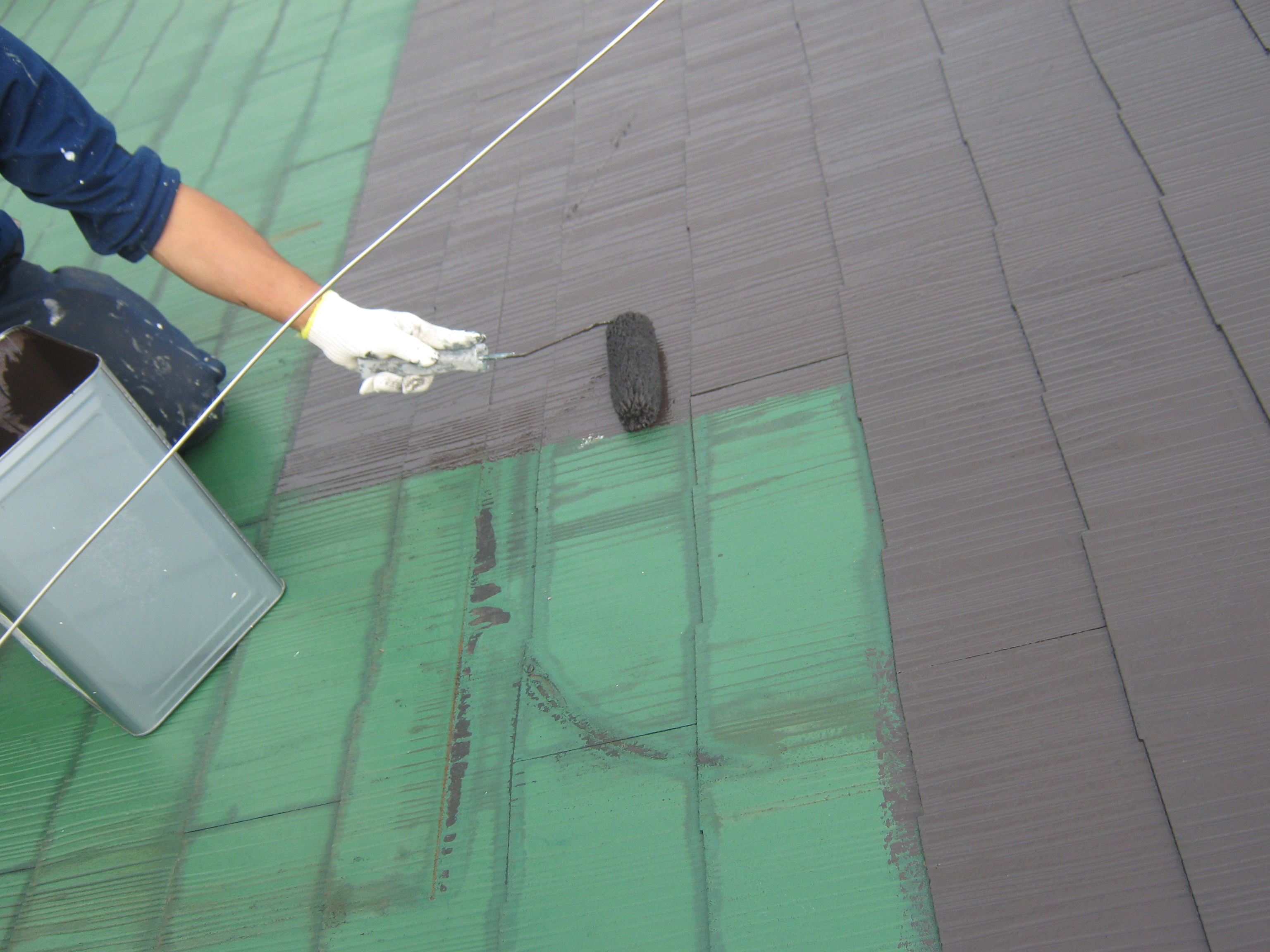 シーラーを塗布後、屋根の塗装をしていきます。(中塗り)