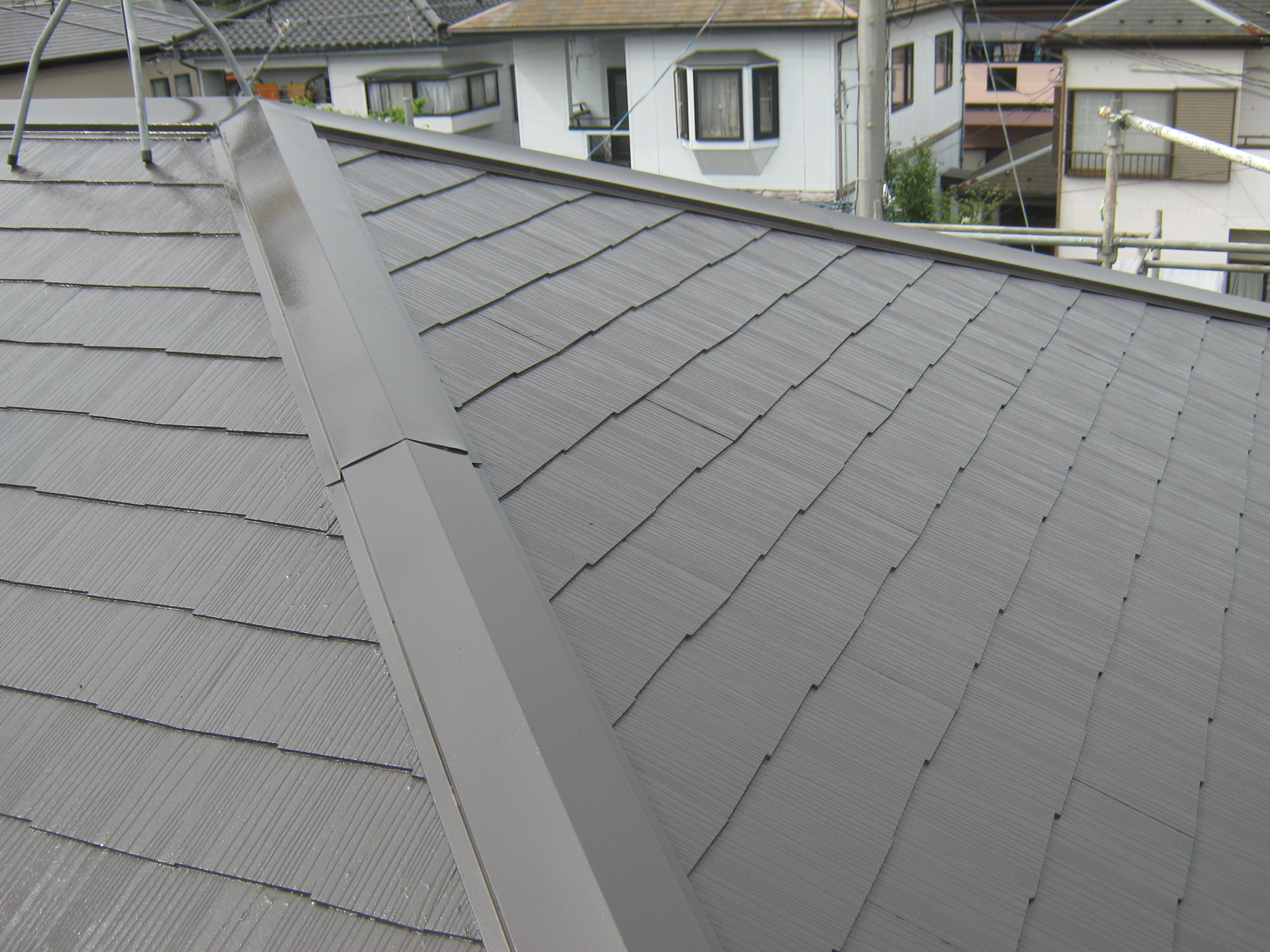 屋根の棟を新しく直し、屋根塗装と併せて外壁も塗装しました。