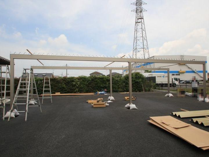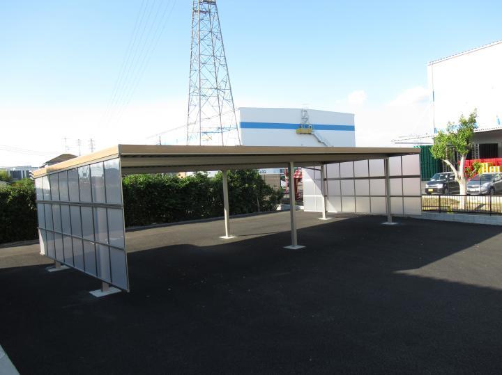 納屋のあった場所を広々とした立派な駐車スペースへ。丈夫な折板カーポートです。広々として余裕をもって駐車ができます。雨風をしのげるようになり、乗り降りがとても楽に。雨や鳥のフンからも大切な車を守れます。