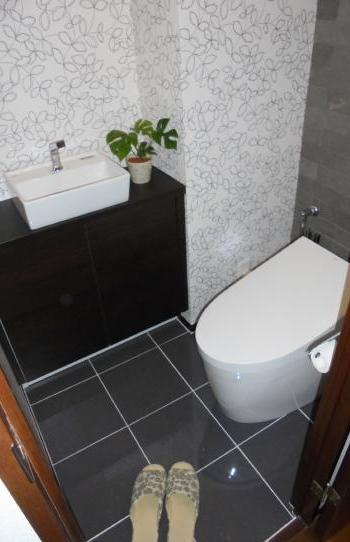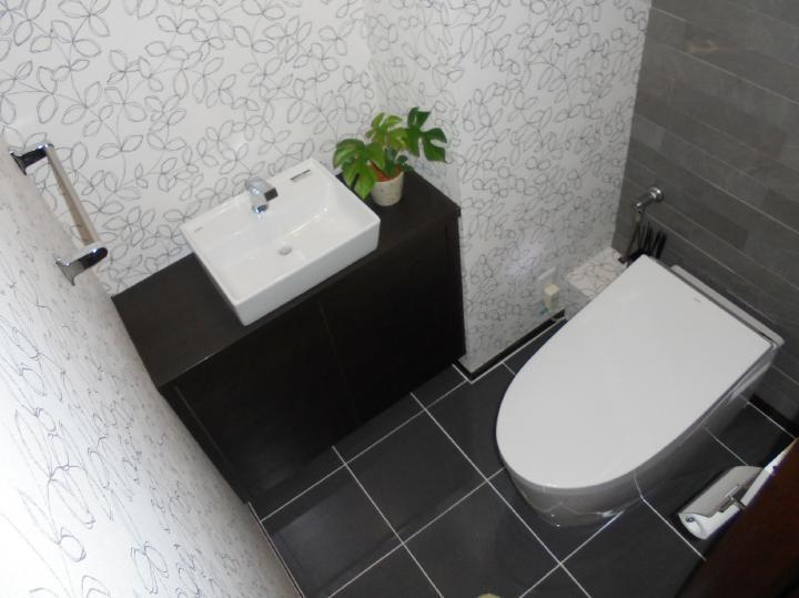 古くなったトイレを快適なトイレ空間へ一新したいとのご依頼でした。トイレ本体は、TOTOネオレスト。タンクレスで、トイレ空間も広く感じられます。また、汚れに強く、掃除しやすいだけでなく、「菌」を自ら除菌し、気になるニオイまで自動で抑えます。便器後方の壁材には調湿や脱臭にすぐれたエコカラットを採用。こだわりのつまったトイレ空間になりました。