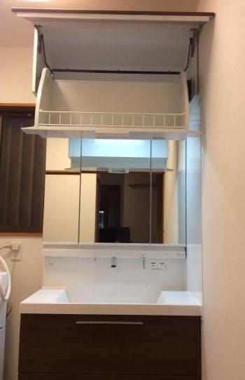 浴室は、タイル仕様からユニットバス リクシル〈リモア〉へリフォーム。冬場の寒さも軽減されます。洗面化粧台はリクシル〈エルシィ〉へ入れ替えます。一体成形カウンターが特徴でお掃除が簡単です。また、ミラーキャビネット、下部のひろびろストッカーで収納量が格段にアップしました。さらに上部にはアッパーキャビネットを設置してデットスペースを有効活用しました。洗面用品は散らかることなく収納できますので、スッキリした使いやすい洗面室になりました。