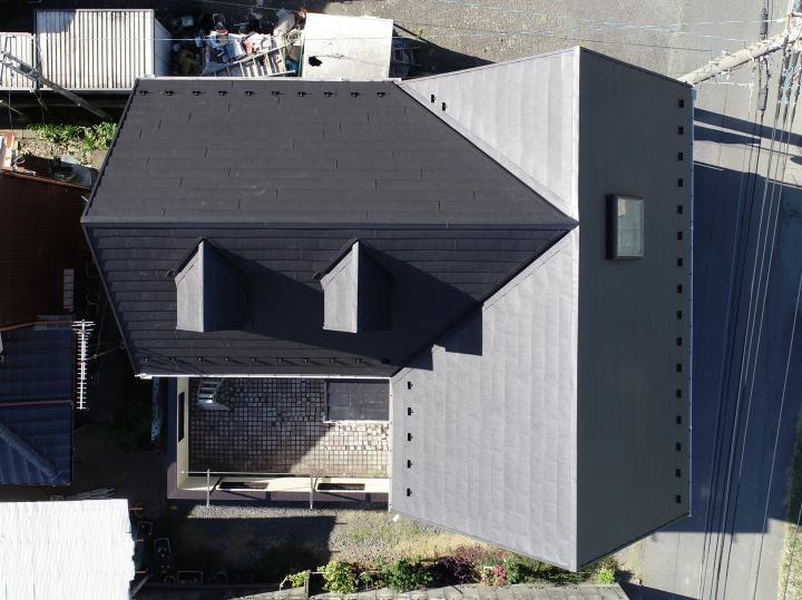 ご近所という事もあり当社へご依頼いただきました。外壁の色ではとても悩まれておりましたが、シミュレーションを重ねて納得のお色を選ばれました。ホワイトのラインがアクセントとなり、屋根の色とも相性のよい外観に仕上がりました。また施主様にはドローンでの撮影に快くご協力頂きました。ありがとうございました。