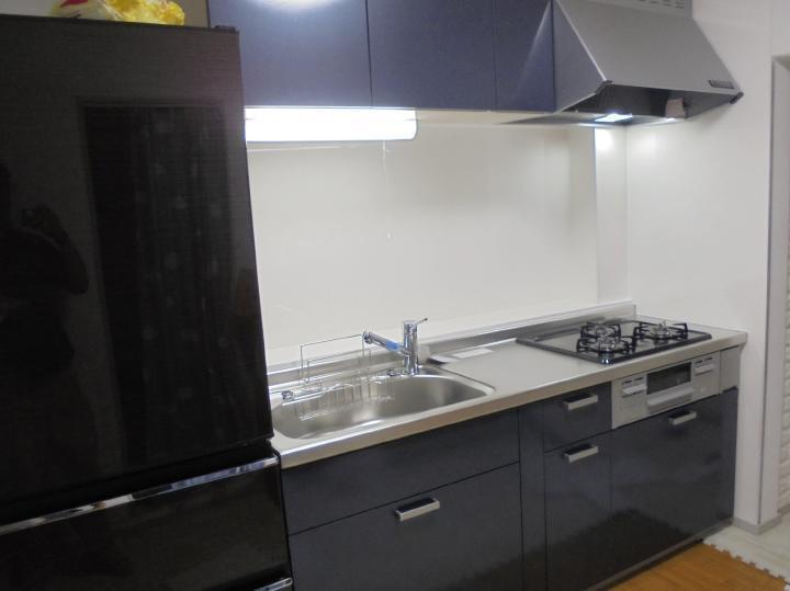 マンション購入にあたり予算内でリフォームをしたいとのことでした。キッチンはシンプルなデザインと使い勝手の良さを両立した リクシル『シエラ』。扉カラーはディープブルーで、より上質さがアップしました。