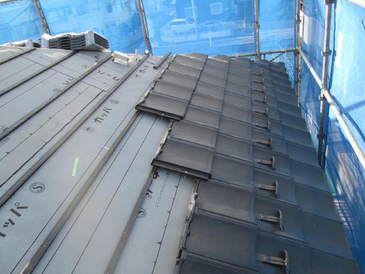 これからの災害にそなえてとのご要望でしたので、軽量性・耐風性・防水性に優れた瓦材「ルーガ 雅」での葺き替えをご提案しました。新素材で軽量ですが、重厚感はそのままに瓦屋根のもつ耐久性・美しさを保ちます。