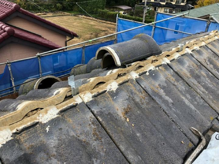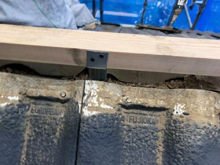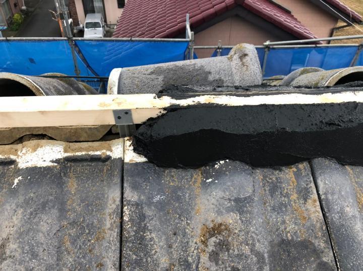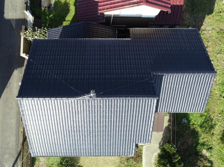 棟瓦の破損がありましたので、シンプル工法で棟を強化します。棟工事後は耐久性をアップさせる屋根全体の塗装をご提案いたしました。塗料はロックペイントのシャネツロックです。耐久性はもちろん美観を保ちつつ、遮熱効果も期待できます。