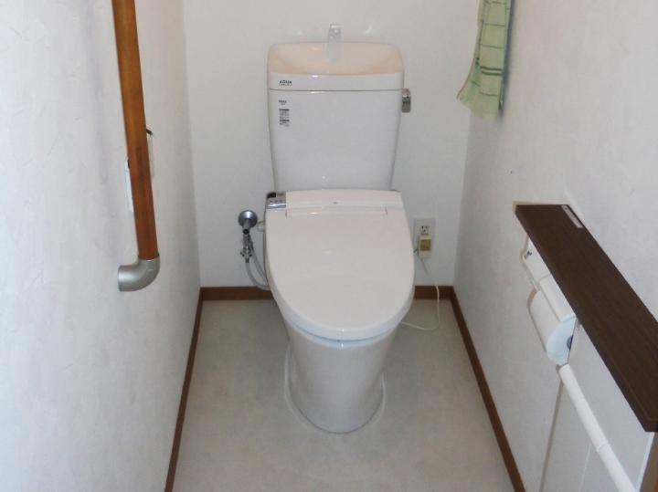 トイレ・洗面室のリフォームになります。トイレは和式から洋式(リクシル アメージュZ)へ。洗面室はクロスの張替えをし、洗面化粧台を(リクシル ピアラへ)入替えました。