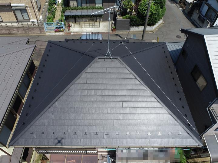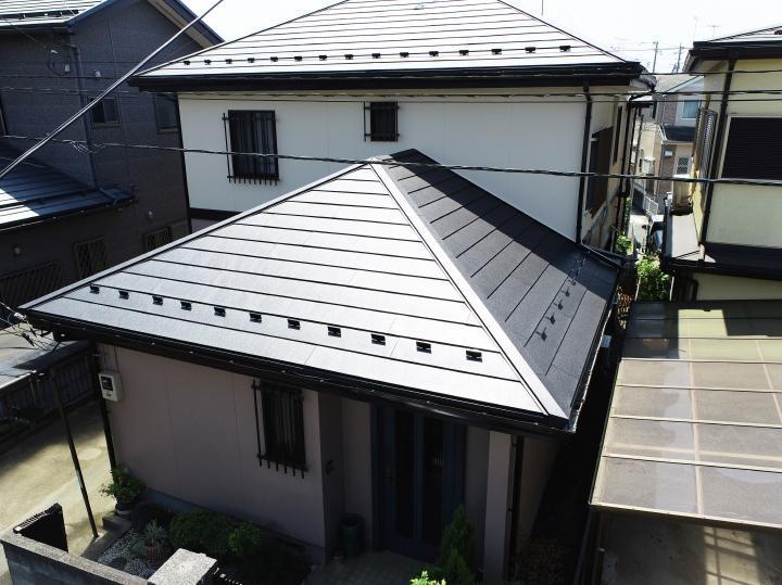 経年劣化で色あせなど目立つようになってしまったので外装リフォーム。屋根は既存の屋根の上から新しい屋根材をかぶせるカバー工法です。屋根材はアイジー工業のスーパーガルテクト。軽量かつ断熱効果に優れています。外壁塗装での塗料はアステックペイントの超低汚染リファイン1000MF-IRを使用。遮熱性・耐候性・防カビ等に優れていて美しさも長持ちします。