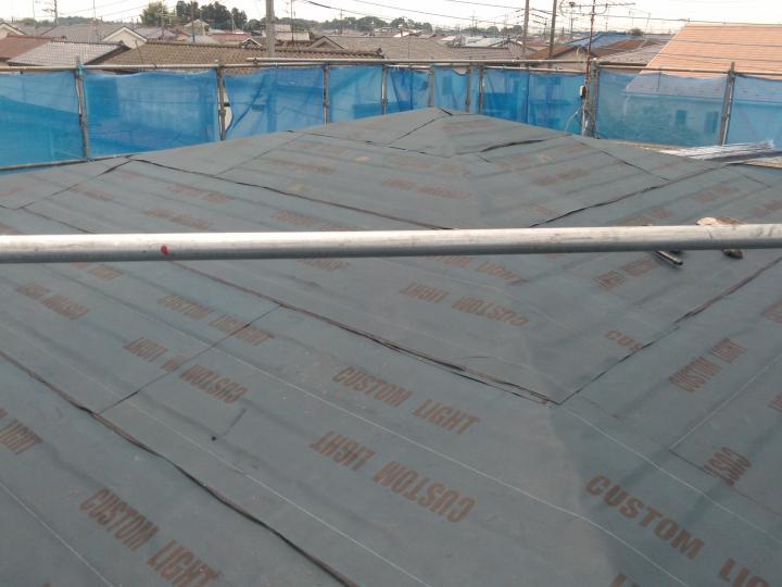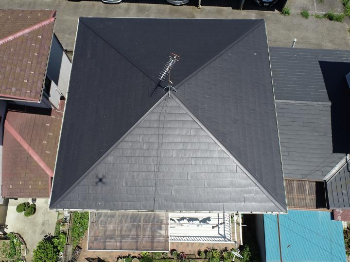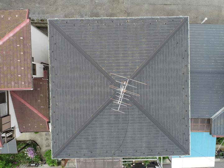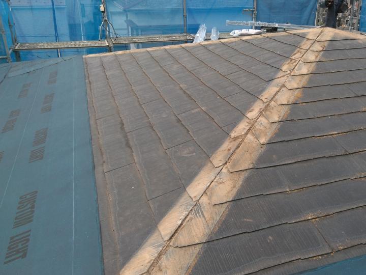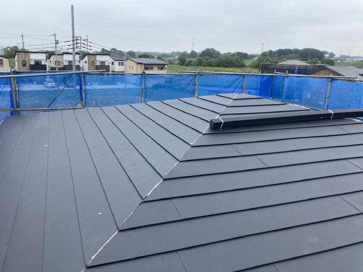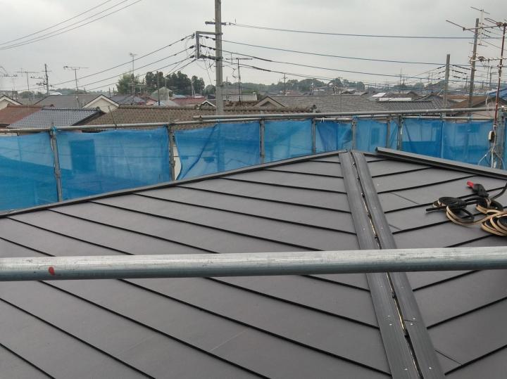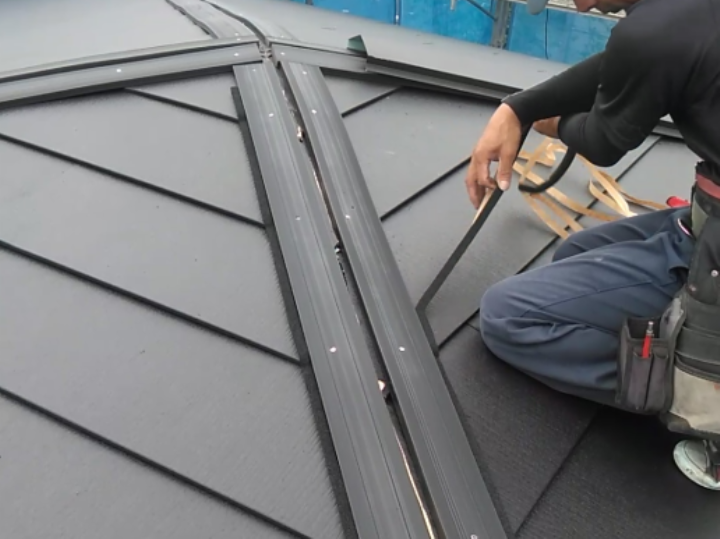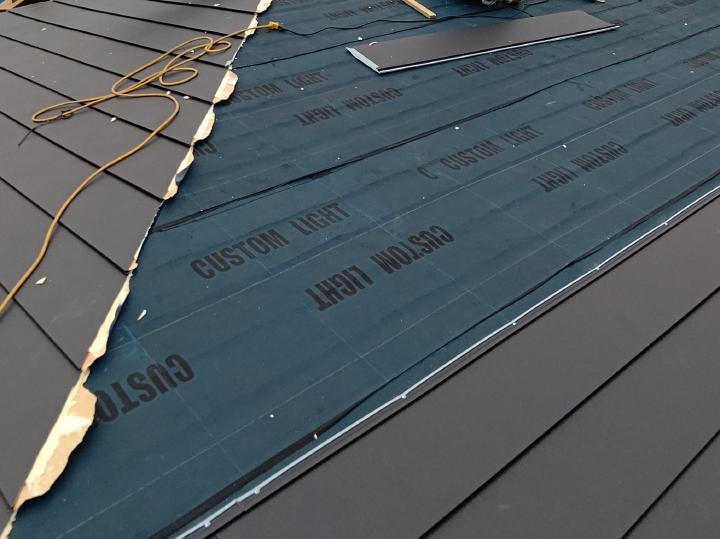 既存の屋根の上から新しい屋根材をかぶせるカバー工法リフォームです。カバー工法は、屋根材の撤去費用を抑えられ、工期短縮にもつながります。屋根材は軽量・断熱効果のあるガルテクトです。