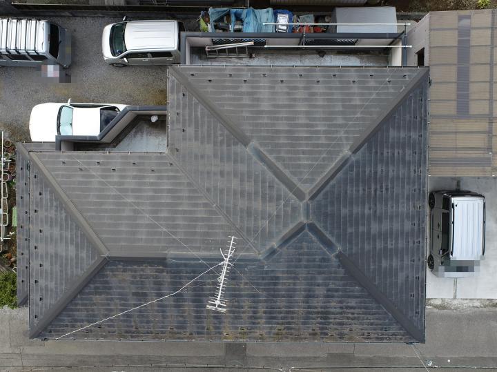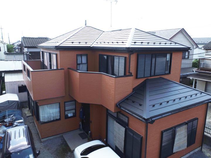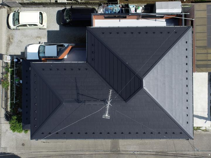 屋根は塗装ではなく、既存の屋根の上から新しい屋根材をかぶせるカバー工法をご提案しました。屋根材は軽量かつ断熱効果のあるガルテクトです。