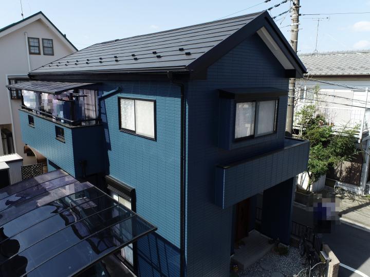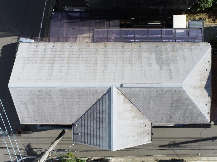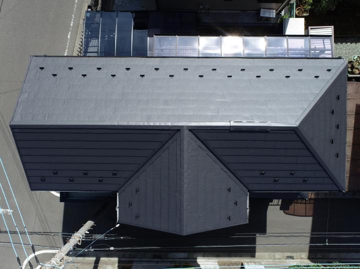 屋根は塗装ではなく、既存の屋根の上から新しい屋根材をかぶせるカバー工法です。屋根材は軽量かつ断熱効果のあるガルテクトです。