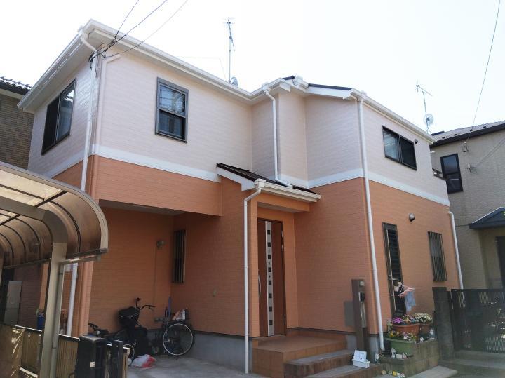 外壁塗装と屋根塗装の事例になります。 外壁と屋根のお色を決めるため、お客様に弊社まで足を運んでいただき、シミュレーションをさせていただきました。 仕上がりは、かわいいお色に仕上がったと喜んでいただけました。