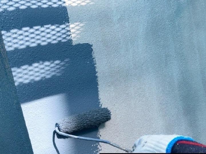 外壁塗装リフォーム。外壁の劣化がきっかけです。塗料は、高耐候性・耐久性に優れたエスケー化研 プレミアムシリコンを使用しました。低汚染性で汚れがつきにくく、カビや藻にも強いので長くにわたりキレイを維持します。 今までの外壁とはイメージを一新しブルー系の色で統一し 素敵な仕上がりになりました。