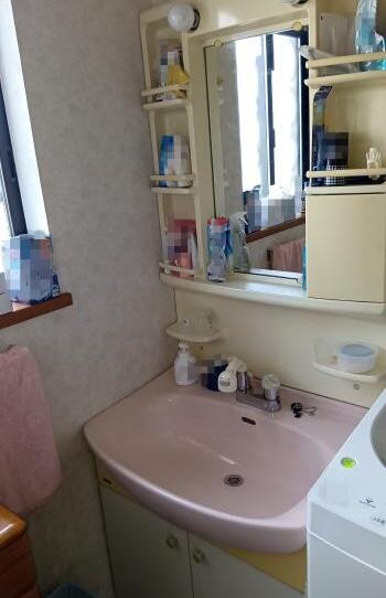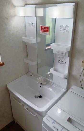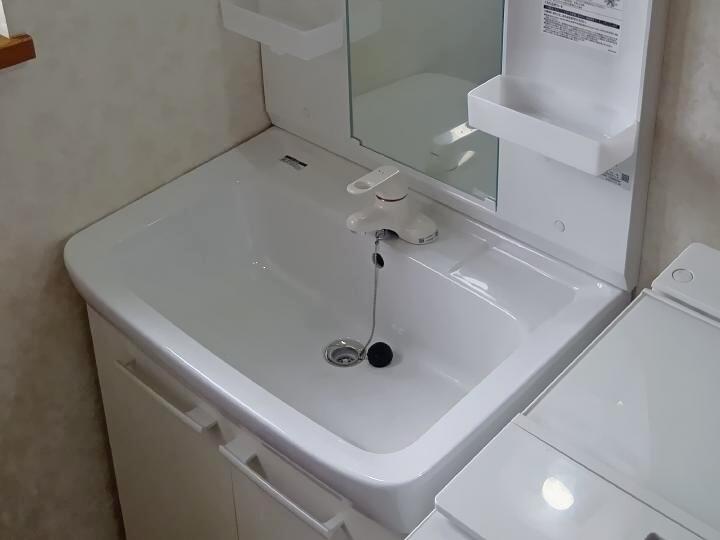 洗面化粧台入れ替えリフォームです。洗面化粧台は、【リクシル オフト】です。洗面器は、なめらかな質感の陶器ボウルで、奥行500mmとコンパクトながら洗顔はもちろん、つけ置き洗いにも便利な容量になっています。また、化粧台本体の扉タイプ収納には、背の高いものや、かさばるものもすっきり収納できます。