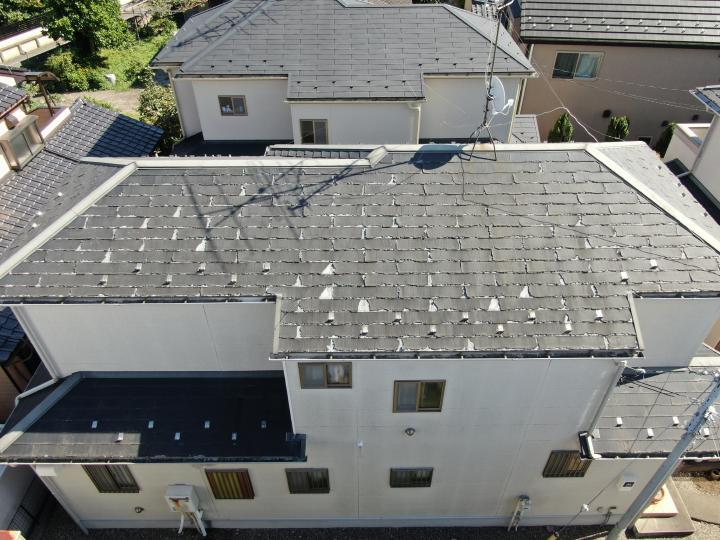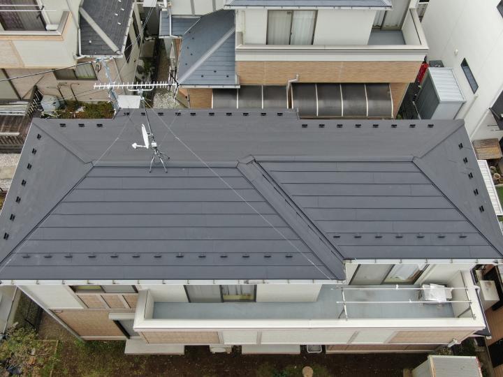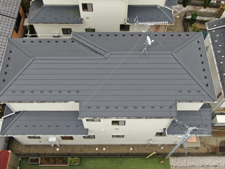表面のひび割れや色あせが目立っていたスレート屋根。放置すると雨漏りのリスクが高まります。今回は、既存の屋根を剥がさず、新しい屋根材を重ねる「カバー工法」をご提案しました。廃材が出ないためコストを抑えつつ、工期も短縮できます。屋根材にはガルテクトを使用し、住まいの耐久性が向上しただけでなく、遮熱性能により夏場の室内温度の上昇も抑えられます。