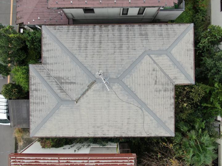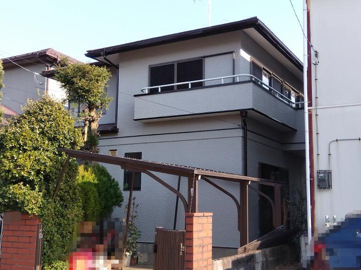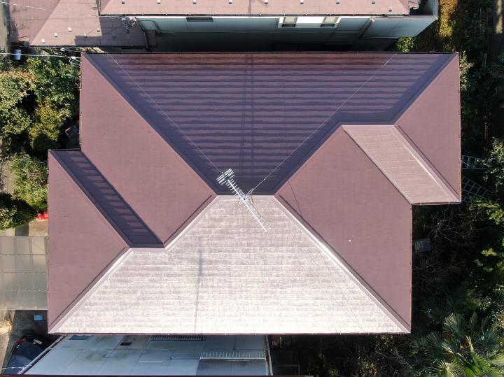 外壁塗装、屋根塗装リフォームです。屋根点検時に見つかった棟の破損を交換後、塗装工程へ。屋根塗料には高い遮熱性と優れた耐候性を誇る「スーパーシャネツサーモSi」を採用しました。特殊な遮熱顔料が夏場の室温上昇を抑えるとともに、熱による劣化を防ぎ、濃い色を選んでも塗りたての美しさを長期間維持します。外壁塗料には性能バランスに秀でた「スーパーラジカルシリコンGH」を採用。ラジカル制御技術が劣化を徹底的に抑制し、お住まいの寿命を延ばします。屋根・外壁ともに、緻密な塗膜が汚れを寄せ付けず、塗りたての美しさが長く続きます。
