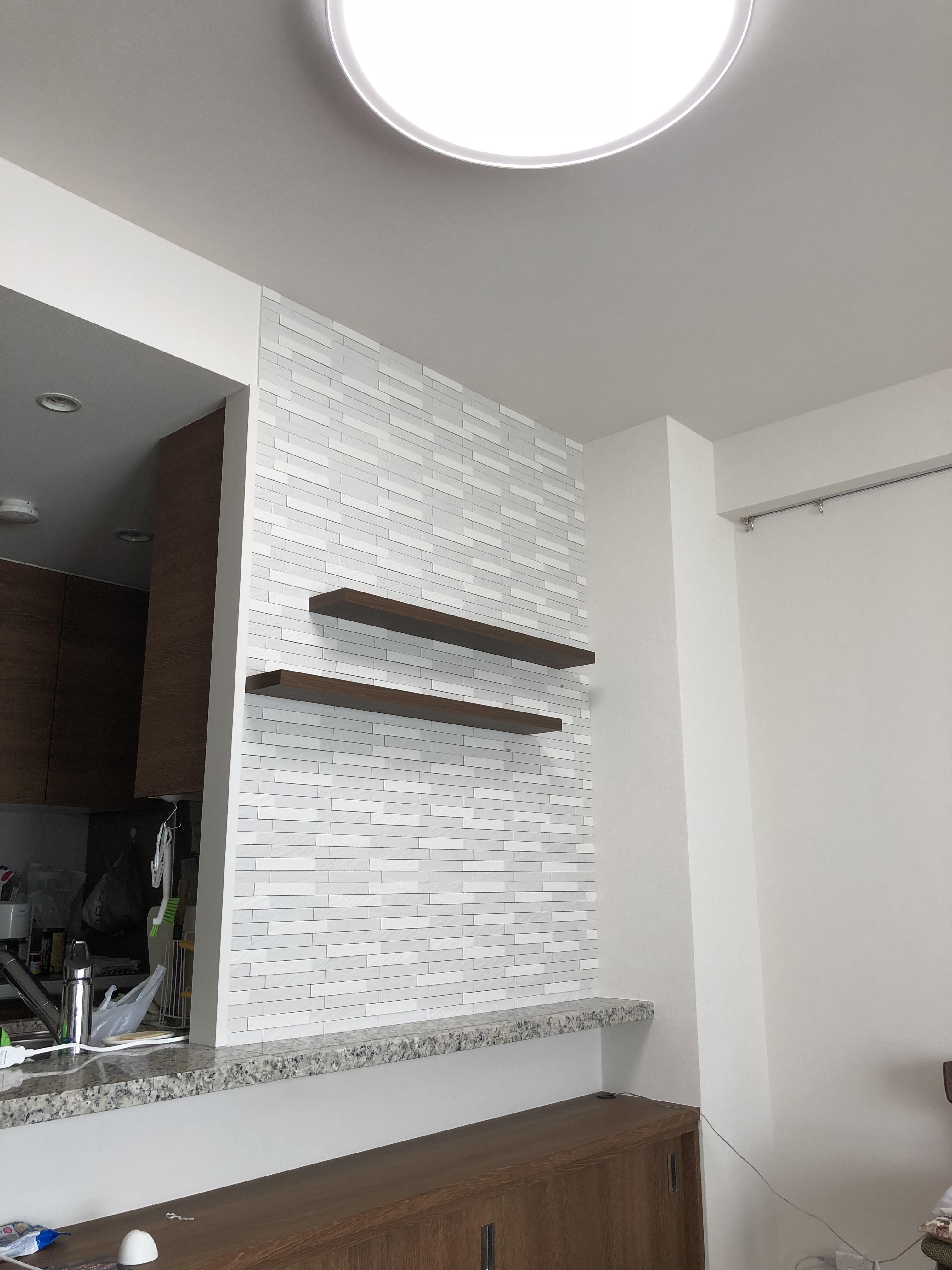 ご近所様宅で設置済の『エコカラット』を見て一目惚れ、リビングのイメージを変えたい。また、小物を飾れる棚を設置してほしい。というのがお客様のご要望でした。タイルのデザインについては、サンプルを取寄せしご納得のいくデザインを選んで頂きました。また、棚については、ヴィータスの一枚棚をご提案、棚の取付位置についてはエコカラットの寸法を考慮し、一番見栄え良い位置で取付。仕上がりに大変満足して頂けました。
