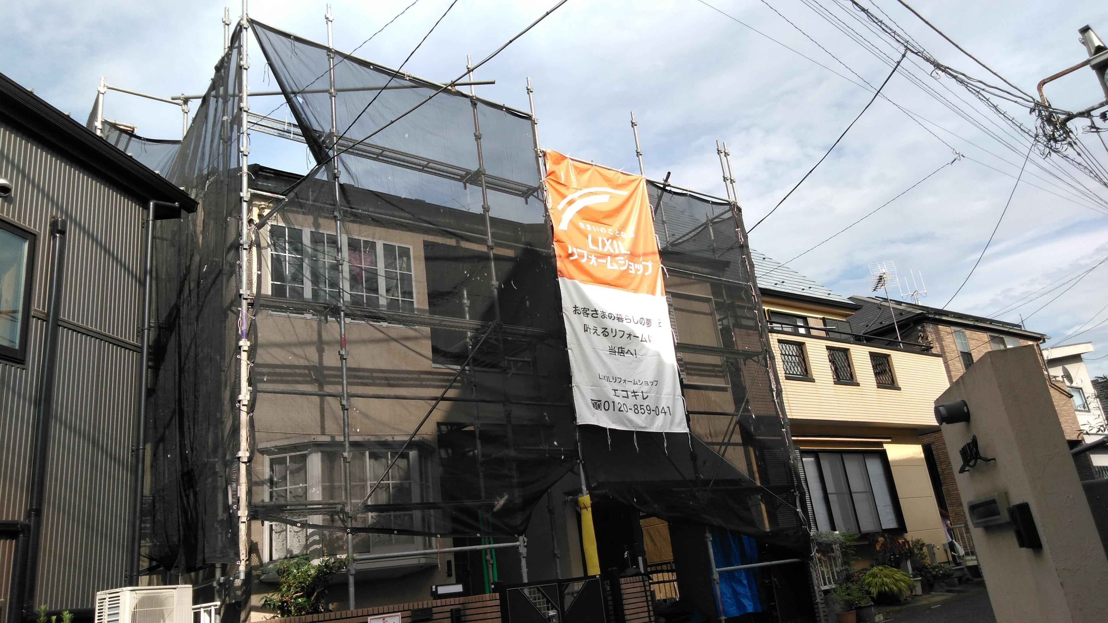 外壁塗装などをやっているお宅で、どこの会社がやってるかわかる現場シート。