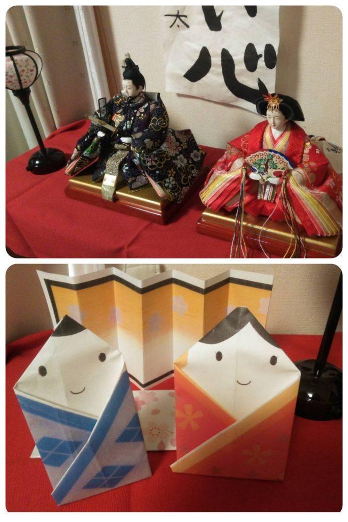 こんにちは。お掃除担当ナオミです。今年のお雛様はとても簡易的にしました。きちんと出すのは場所も取るし、気合いも必要だしと、腰が重かったのですが、子供の成長を願う大切な行事!出さないよりはマシ!と、今年は棚の上にお雛様とお内裏様とぼんぼりのみ飾りました。子供には折り紙のお雛様を飾ってもらいいつもとまた少し違うひなまつりを楽しみました。