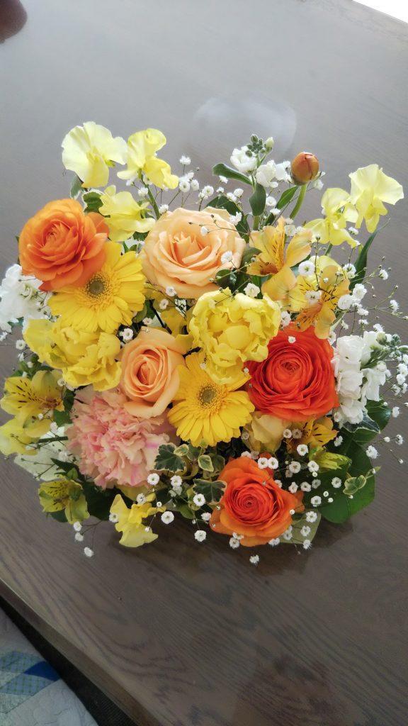 先日、可愛い花籠を頂きました。色々なお花がセンスよく咲いてい
