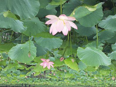 池の中から真っ直ぐと伸びて大輪の花を咲かせる蓮は神秘的です。