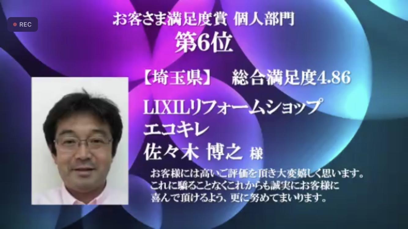当店の佐々木が昨年度のお客さま満足度アンケートの個人部門で全国第6位を受賞いたしました。