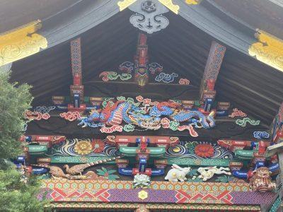 社殿彫刻の「つなぎの龍」「子育ての虎」は日光東照宮の「眠り猫」の彫刻職人左甚五郎の作品。