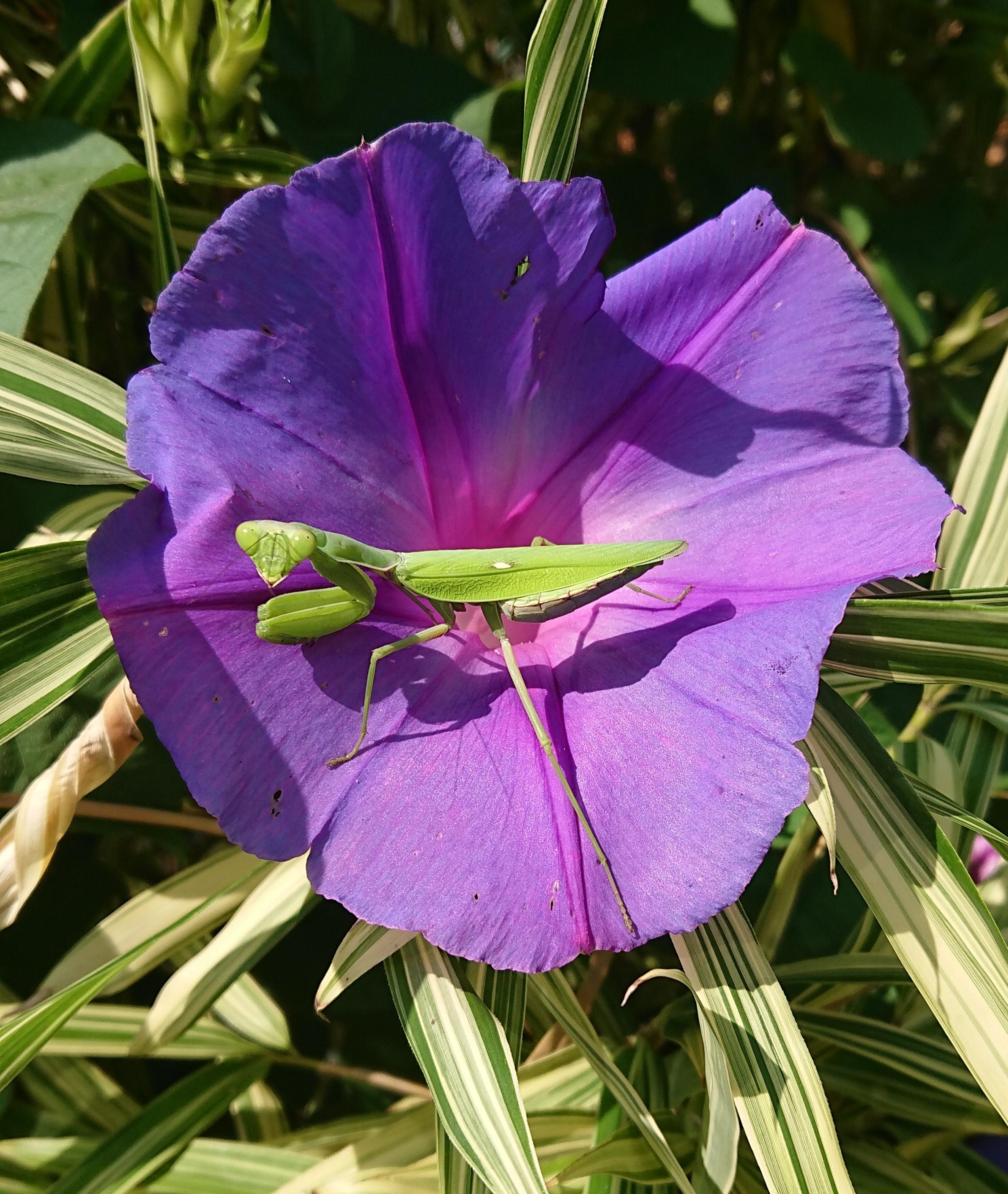 食事準備中のお腹の大きなカマキリが、ちょっとこちらに振り向いてポーズをとってくれました。