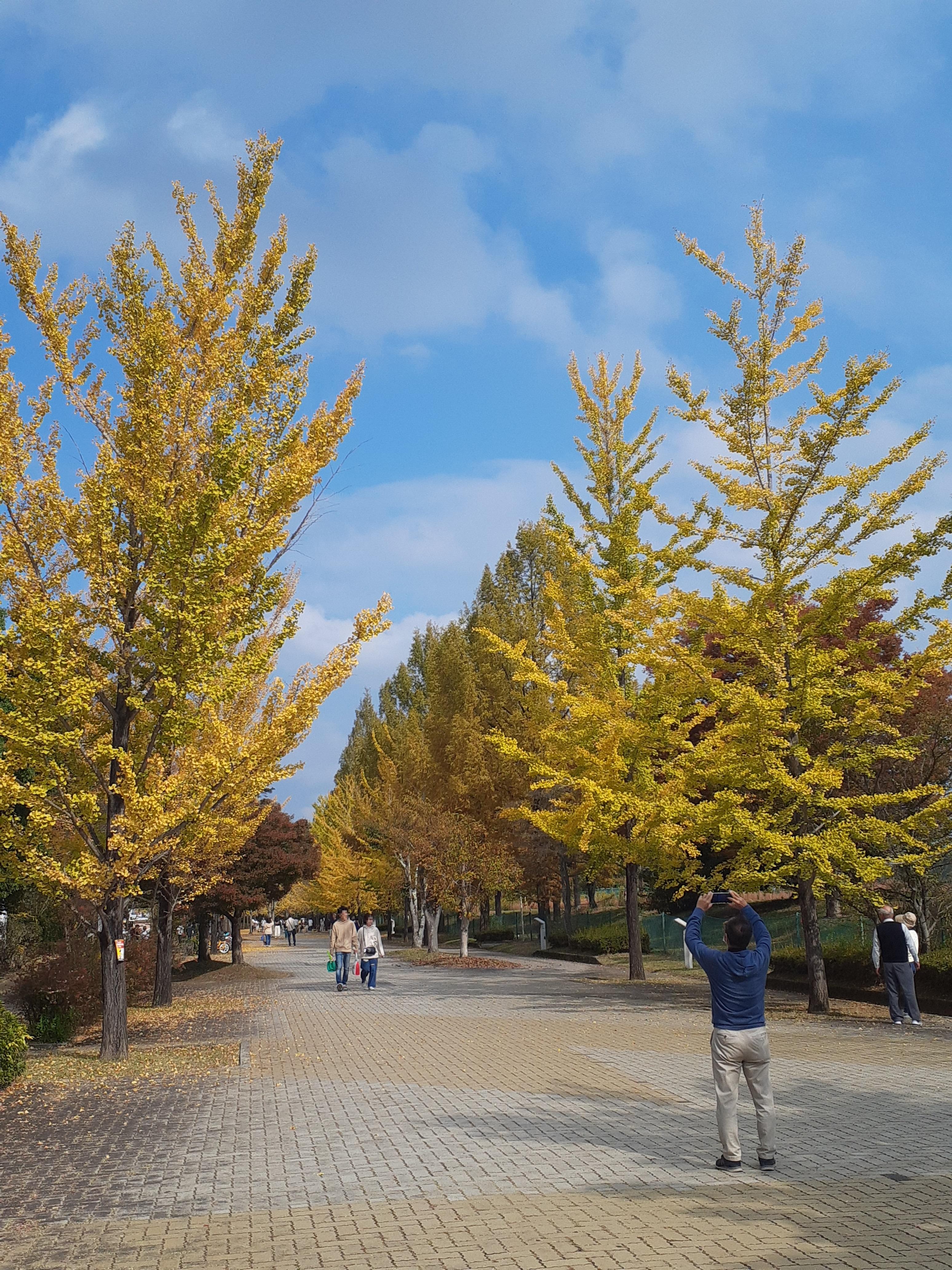 秋ですね。ということで秩父ミューズパークの銀杏並木を見に行ってきました。