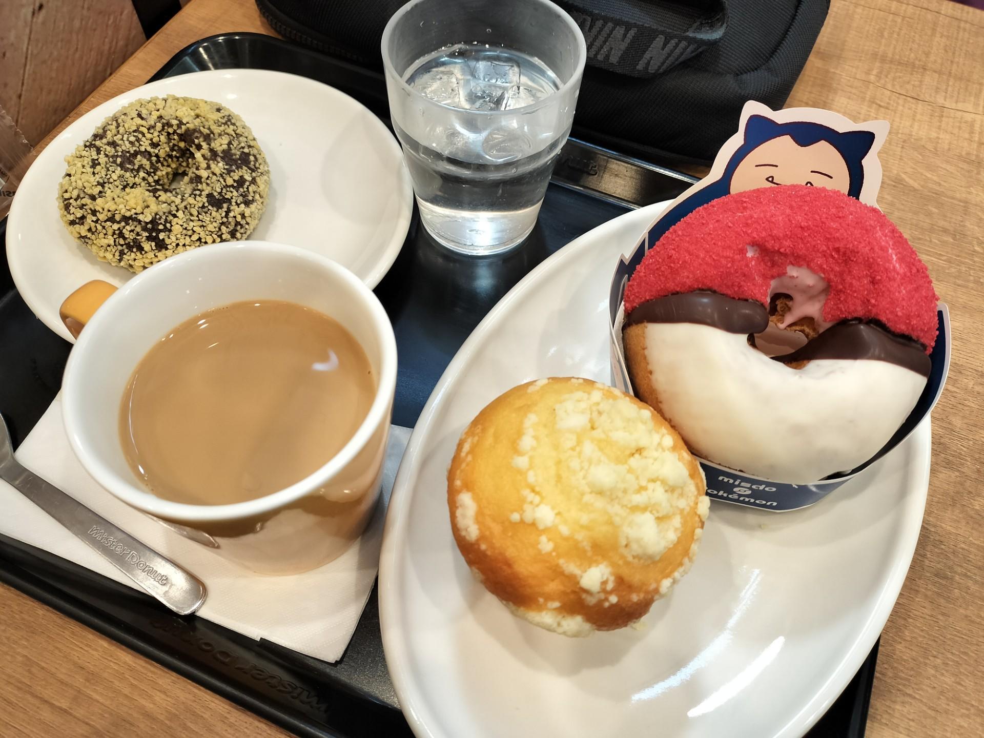 モンスターボールのドーナツを購入しましたが、イチゴのフレーバーがとてもおいしいと言っていました(^▽^)私はバターたっぷりのマフィンとおかわり自由のカフェオレで暖まりました。