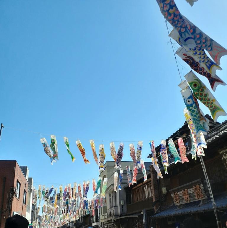 川越にある大正浪漫通りには、たくさんの鯉のぼりがはためいていました。
