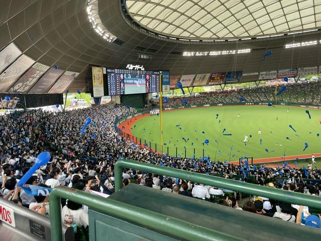 久しぶりに、ベルーナドームに行ってきました。新型コロナウイルス禍で禁止されていた、ジェット風船を使った応援も復活しました。今年は思うように戦えず苦戦していますが、応援する気持ちはかわりません。今井君の7回115球2失点の好投で、勝利しました。フラッグ配布日でゲットしました。満足!![]()