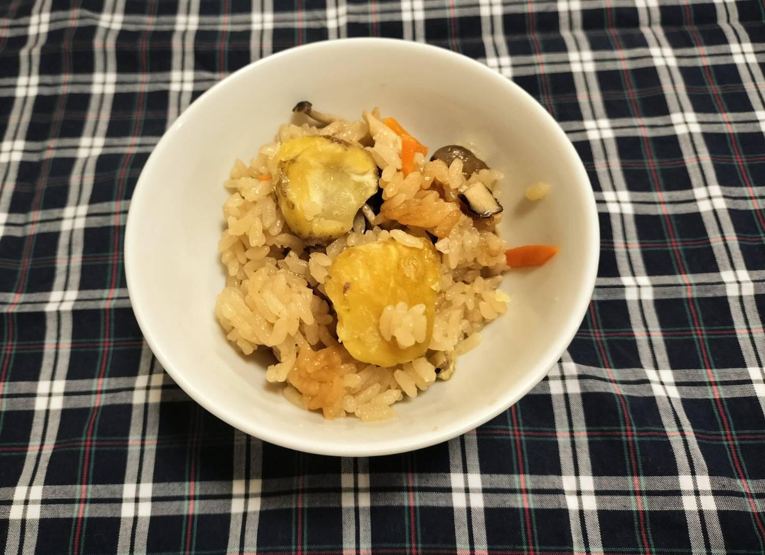 まずは定番栗ご飯!と思ったのですが、うちの子どもたちはあまり栗ご飯はお好みでない...。きのこを入れてお出汁とおしょうゆでしっかり味がついた「栗ときのこの炊き込みご飯」にしてみました。