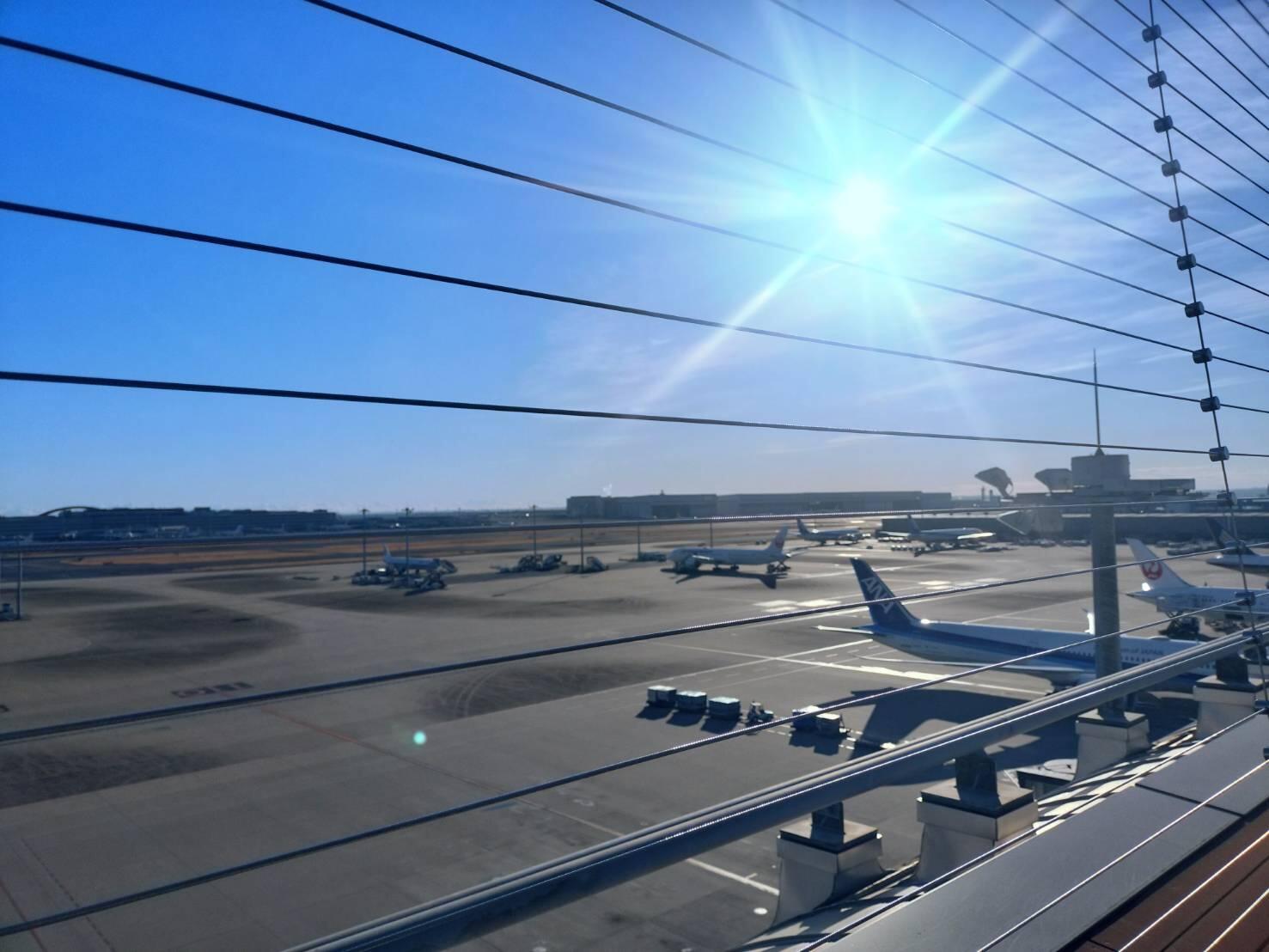 出国ゲートから見送ったあとは、空港内を散策...展望デッキから飛行機をながめました。朝日がまぶしかったです!