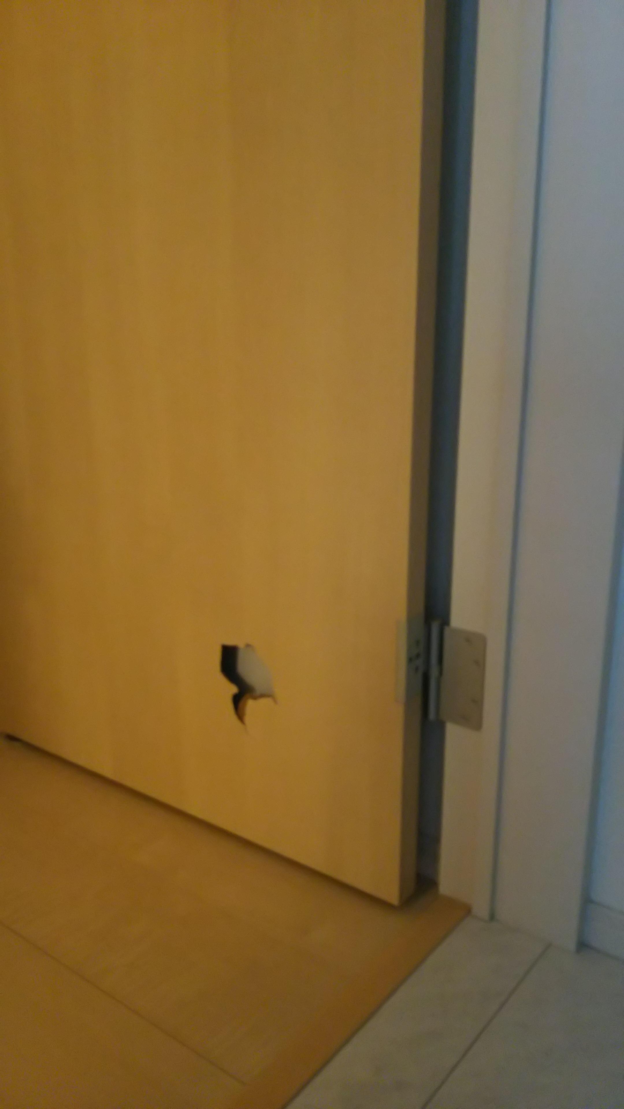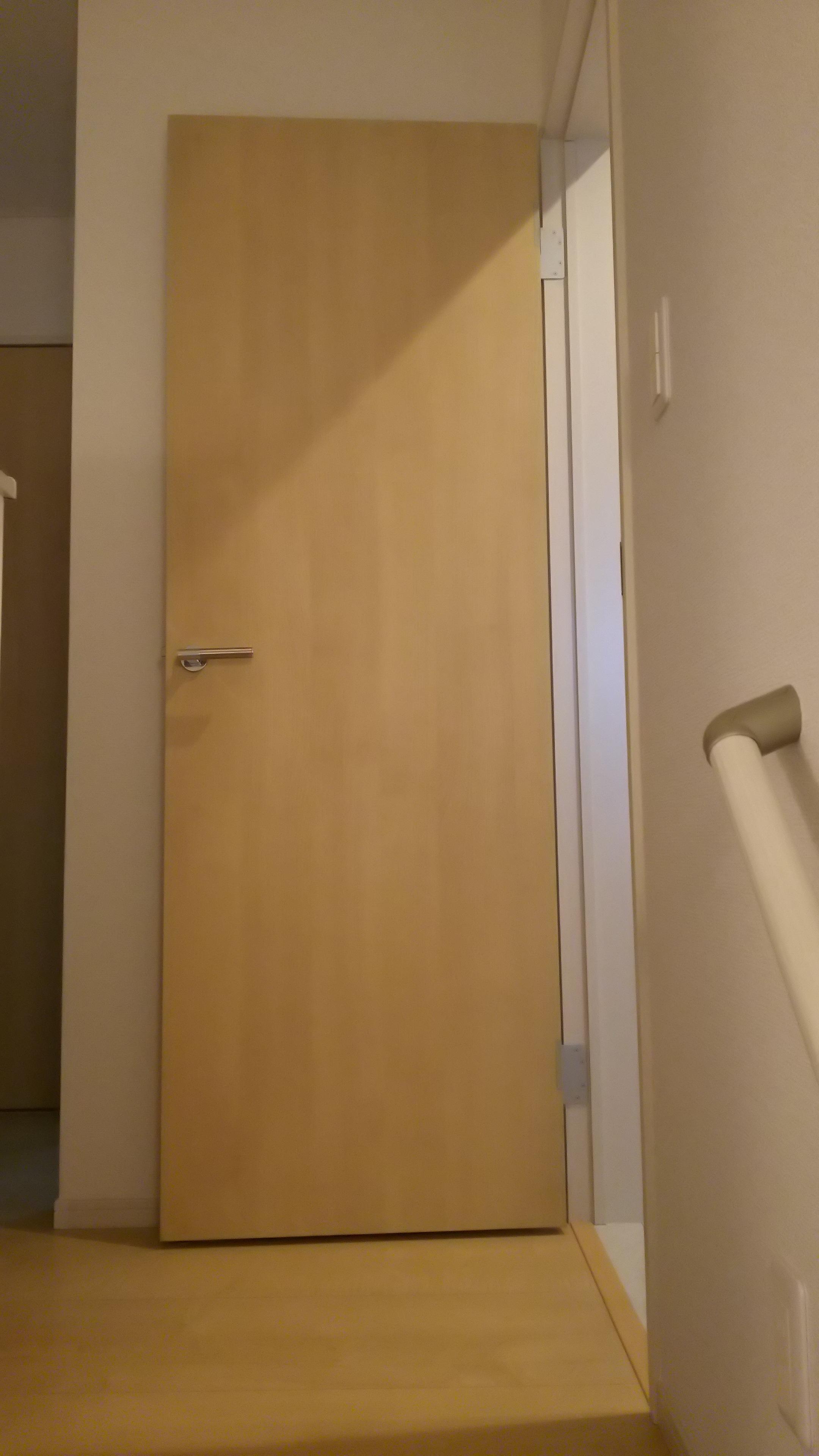 脇田郵便局内のリフォーム相談会でご依頼をいただきました。洗面所の内装ドアに穴が空いてしまったので、同じものに取り替えてほしいとのことでした。なかなか入手しづらいメーカーでしたが、何とか同じものをご用意することができました。