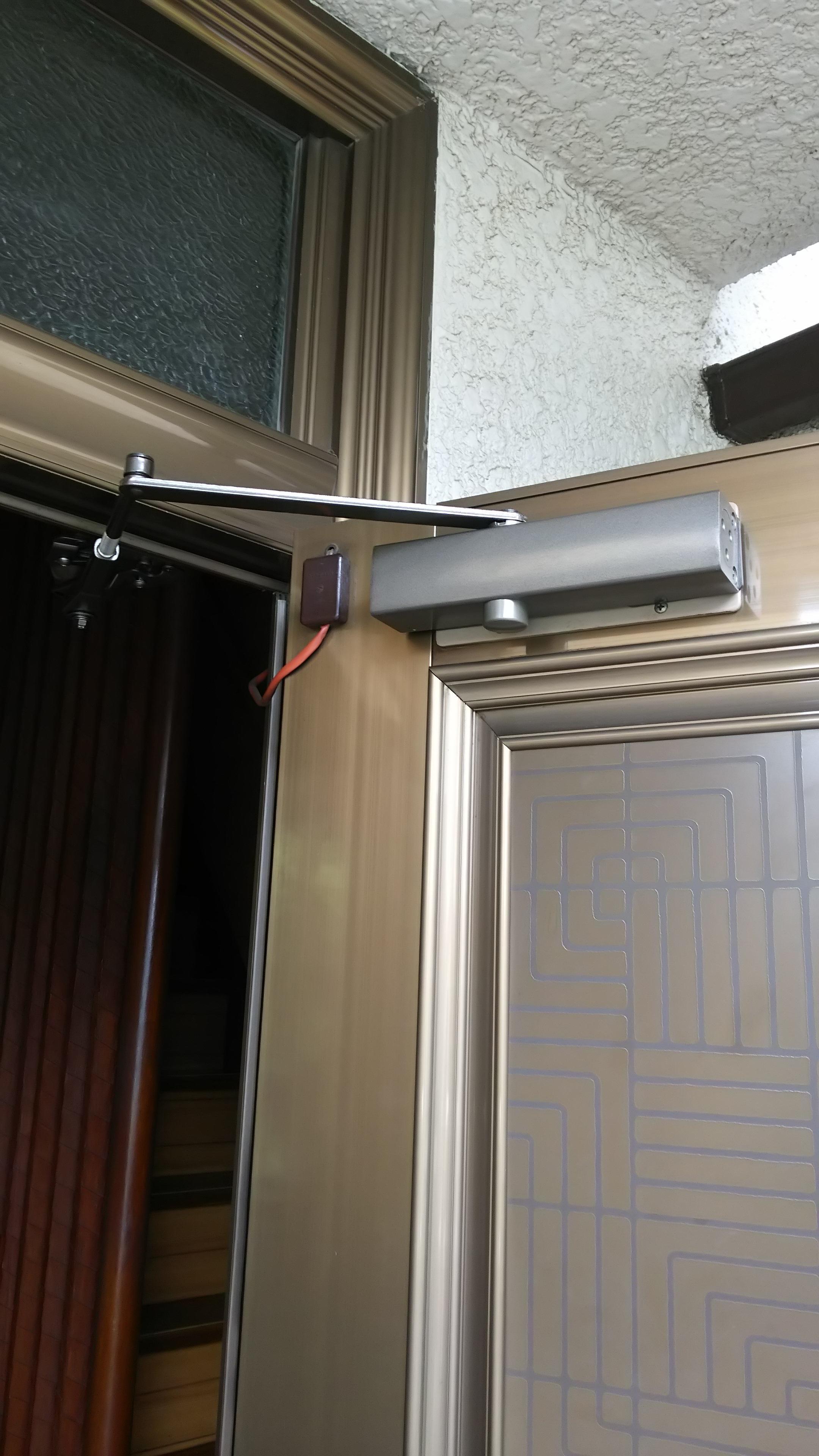 ドアクロ-ザ-の破損のため交換依頼でした。小さな工事でもやってくれるのかとお電話いただきましたが、すぐに対応させていただいました。閉まる時にかなり大きな音がしたり、少し開いたままの状態になっていましたが、交換により、静かにスム-ズに開閉できるようになりました。活動的なご主人、やさしい笑顔の奥様。年齢はふせておきますが(笑)、こちらのご夫婦のように素敵に年を重ねたいなと思いました。
