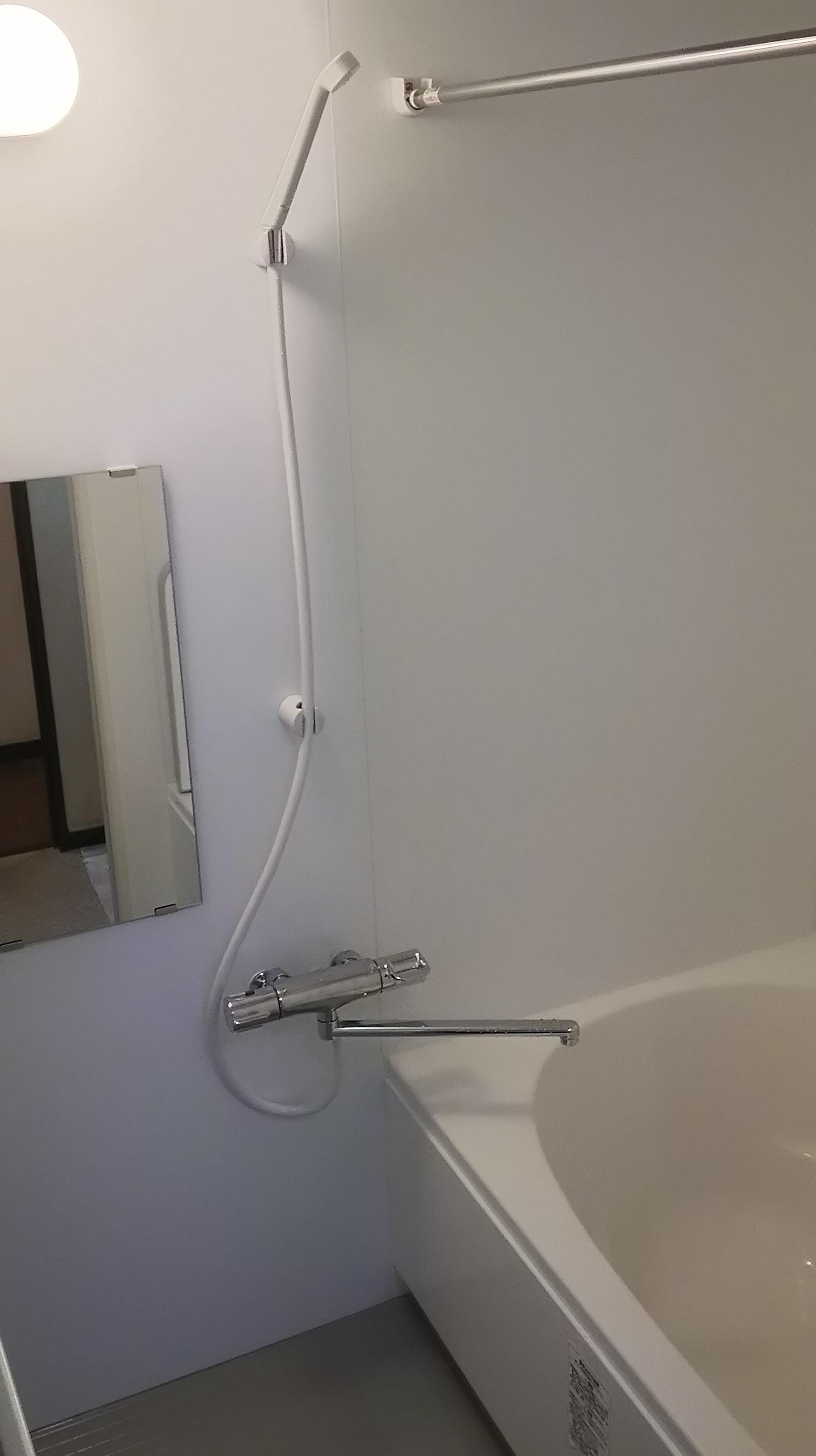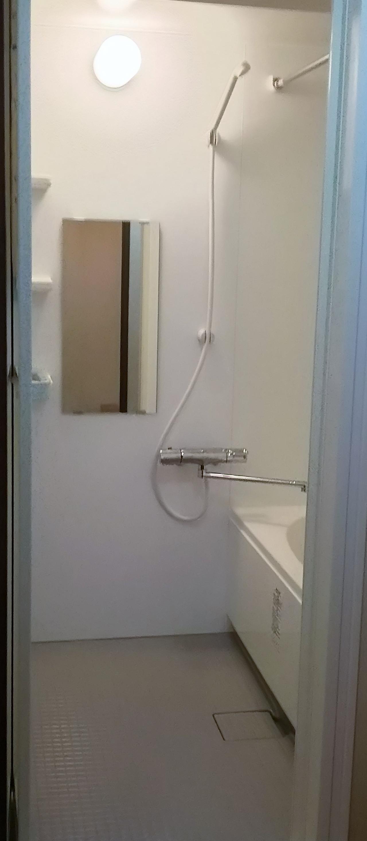転勤が決まり、マンションを貸すので浴室を交換したいというご依頼でした。ドア・床・壁・排水溝などお掃除簡単な素材になっている仕様のユニットバスをご提案させていただきました。それぞれ仕様は選んでいただくことができ、換気乾燥暖房機設置もご希望でしたので、取付いたしました。給湯器も20年以上ご使用で最近お湯が温かくならないとのことでしたので、交換いたしました。標準仕様にエコ機能も装備されており、お客様に喜んでいただけました。