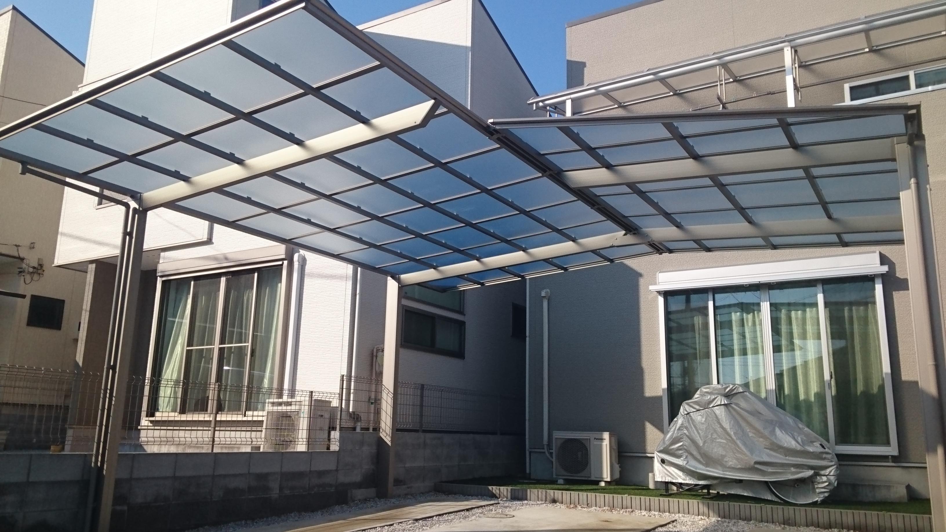 2年前にスタイルシェードの工事をさせていただいたお客様で、今回はカーポートのご依頼をいただきました。角地に合わせた屋根にしたいとのことで、経験を積んだ職人が現場で加工を行いました。 熱線吸収ポリカを使い、お客様のご希望に合う形に仕上げていきました。お客様に「イメージ以上のものができあがりました」と言っていただき、このような仕事に携われて良かったと改めて思うことができました。