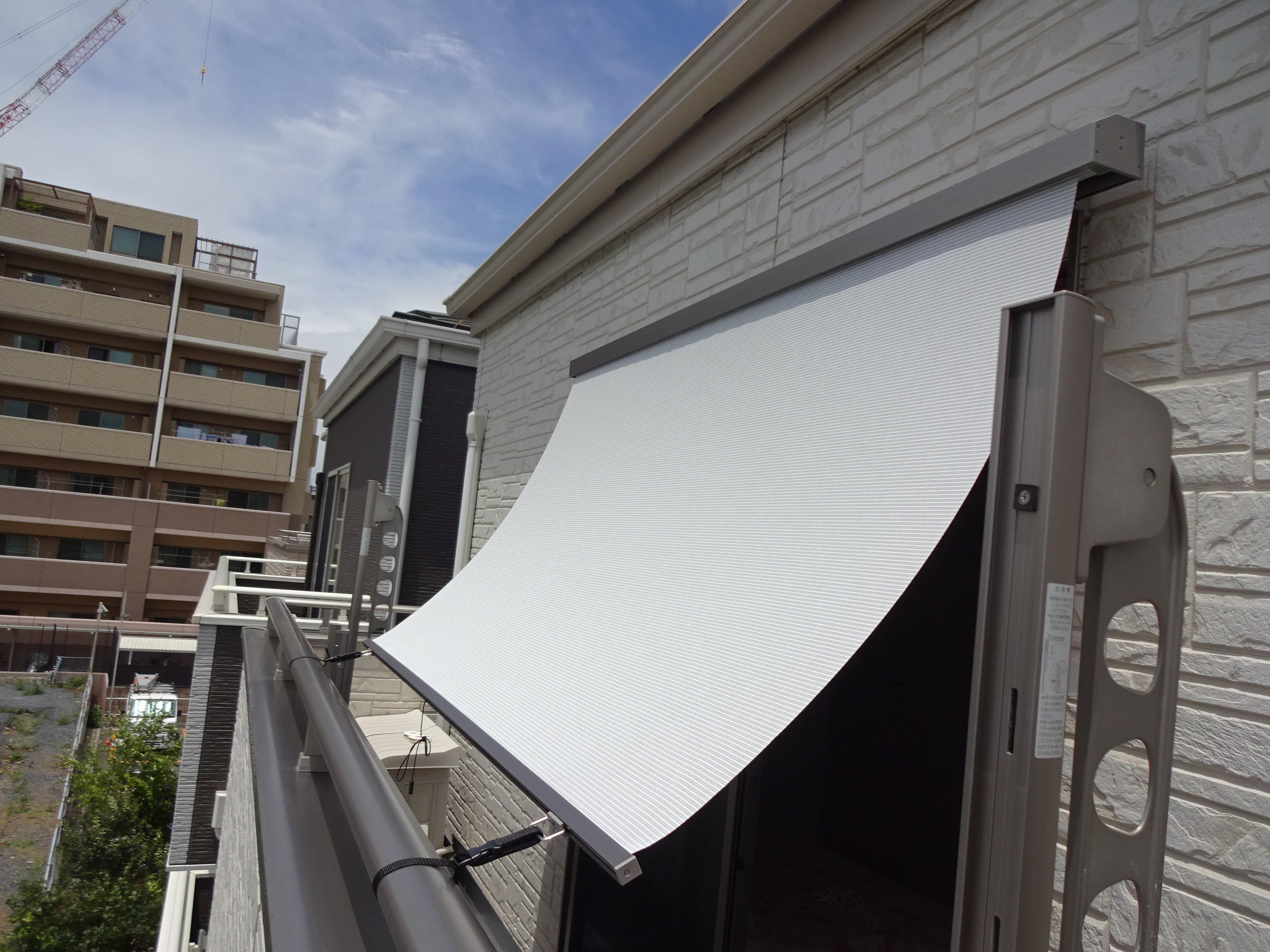 シェードの取付工事をさせていただきました。 本当はもっと前に取付の予定だったのですが、雨のためずっと延期になってしまっていました。 今朝も少し雨が降って心配していたのですが、取付の時間には快晴になっていて良かったです。 こちらのお部屋は陽当りがとても良く、夏場はちょっと良すぎるくらいでした。 そこで、LIXILのショールームへ行ってこちらの新作!『デザインシェード』を決めていただきました。 LIXILも【夏のクールリフォームキャンペーン】対象なので抽選で素敵な商品も当たるかも・・・! シェードシェードの取付工事はPATTOリフォームなので、取付所要時間も1時間程度。 今ある窓にも外壁にも穴を開けることなく金具で挟んで取り付けるので安心ですね。 途中で固定できる中間フックと風が強いとき用に手すりで固定できる部品もオプションで付けました。 取付終わって早速シェードを下げてみました。 日差しがカットされ少し涼しくなった感じがしました。 環境にもやさしいリフォームです!