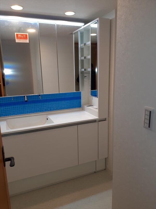 この度は当店のご利用誠にありがとうございました。ご依頼内容については「大型マンションの一階で、水回りの部屋にカビが絶えない」というお悩みから、強烈なクリーニングを行いカビを死滅させる工事をお考えの様子でしたが、まずは『換気』『吸湿(除湿)』でお悩みの大半はなくなることをご提案させていただきました。カビの程度がひどいトイレは壁下地から耐力的なことも考えたうえでの壁下地の交換、換気力の落ちていた中間換気システムを全廃し、あらたに浴室上方にトイレ・洗面所・浴室の湿気を強力に吸い込めるようパワーのある200Vの3室換気扇、そして何よりもLIXILの室内環境を変える内装タイル『エコカラットプラス』を大量に投入し、お悩みの解消をさせていただきました。お客様ご家族のご協力もいただき非常に良い工事になったと思います。また機会がありましたら、ご期待にそえますよう努めてまいります。今後ともよろしくお願いいたします。