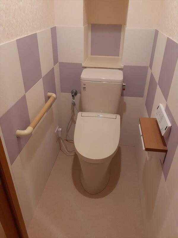 浴室・洗面室・トイレのリフォームのご依頼をいただきました。カビや湿気にお悩みのためカビ取りの薬剤利用を希望されていましたが、壁下地材にこだわり、おすすめのエコカラットプラスを施工し、パワーのある換気扇を設置することを提案いたしました。洗面化粧台は娘さんの使い勝手を考慮してルミシスに、浴室はエプロン掃除が大変なので、掃除不要のスパージュを採用されました。トイレ室・洗面室には白とラベンダー色のエコカラットプラスを貼ることにより、壁にアクセントカラーを添え、湿気を吸収・空気環境も改善し、お悩みのカビや湿気はかなり解消されお喜びいただきました。