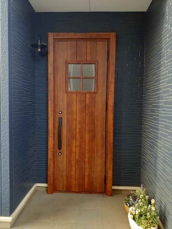 玄関まわりに当たる西日にお悩みで、玄関ドアのリフォームをお考えになりました。