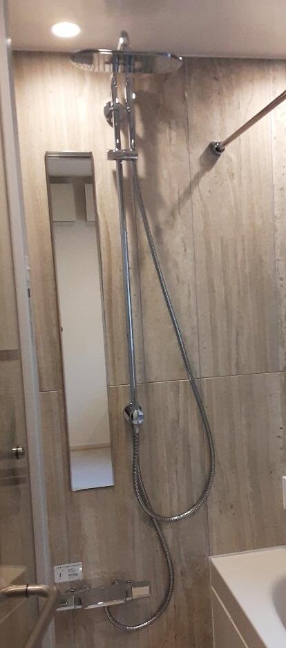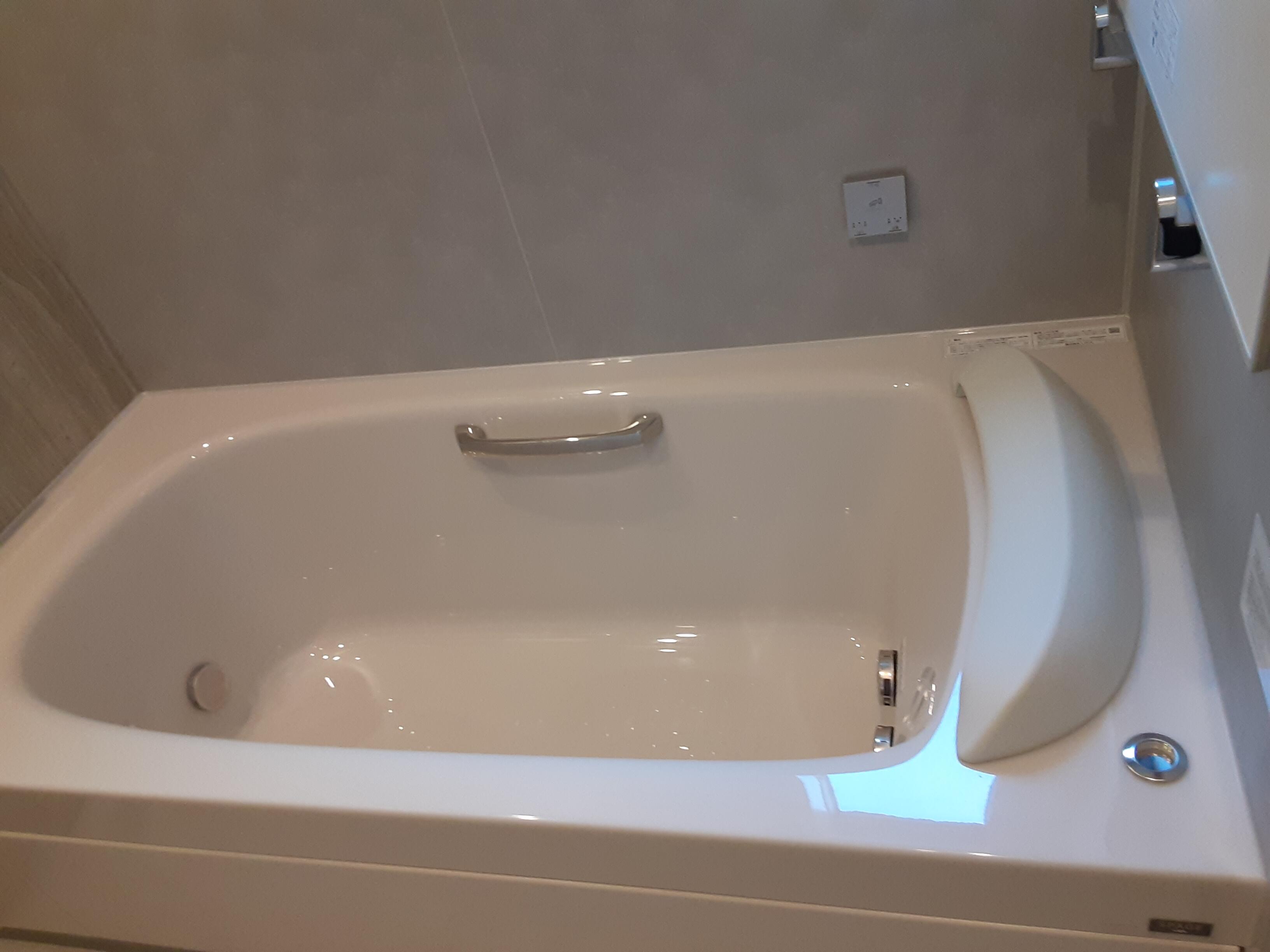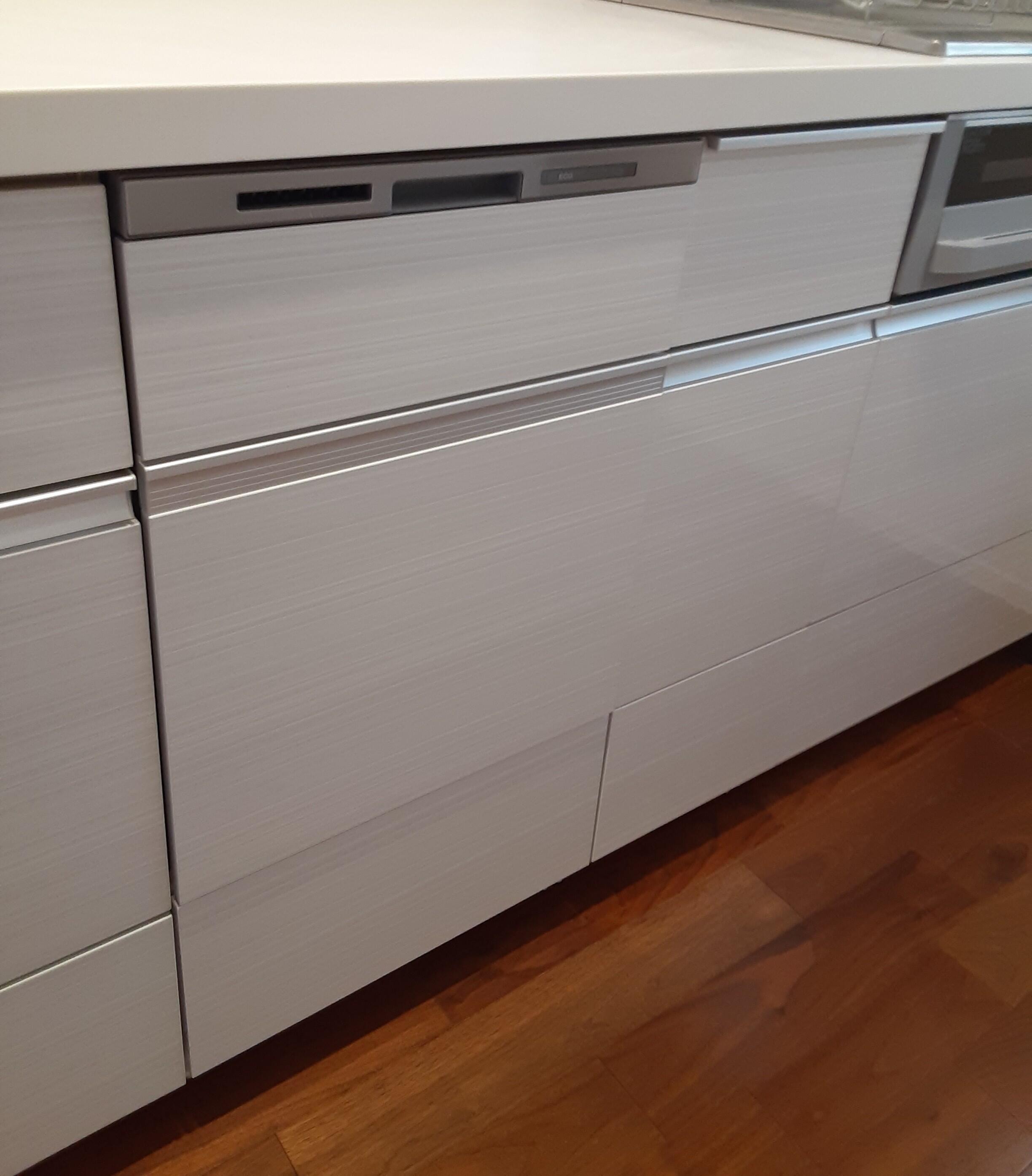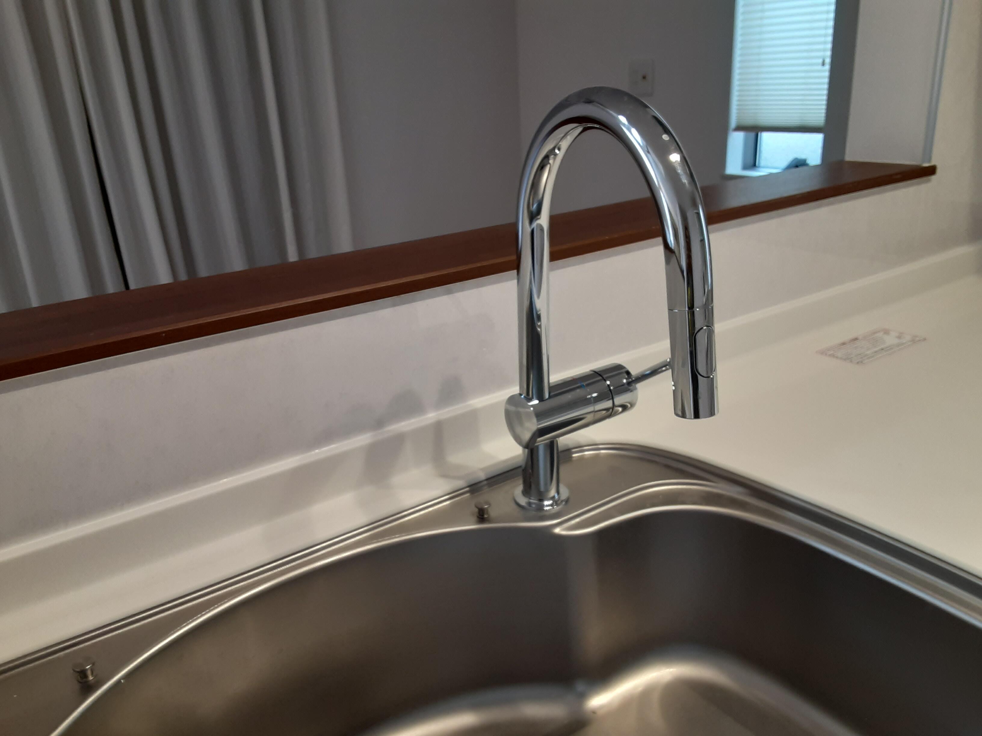 浴室はハイグレードなシステムバス スパージュ、洗面化粧台はルミシスボウル一体型を採用いただき、システムキッチンは流用し食洗器を設置しました。浴室・洗面・キッチンの水栓はいずれもお気に入りのドイツ製のグローエを選ばれ、浴室ドアは一般宅ではあまり例がない220㎝のハイタイプを設置し、まるでホテルのような高級感のある空間になりました。随所にご夫婦のこだわりの設備工事を行いました。食洗機の設置にあたり、廃番のシステムキッチンと同様の面材を探すことができたことも、今回ご依頼を頂いた決めてとなりお喜びいただきました。