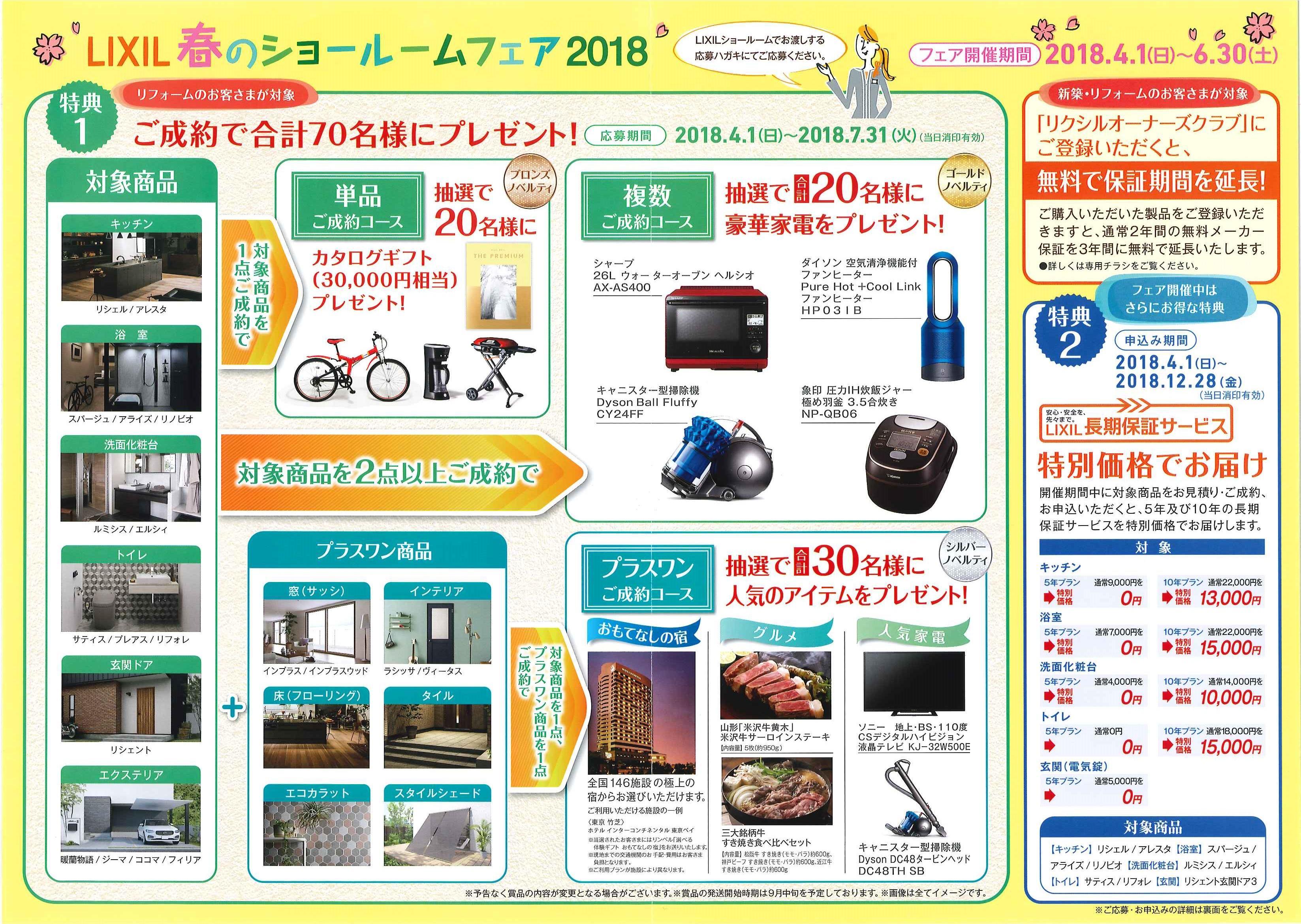 今回ご紹介するキャンペーンは、リフォームのお客様限定「LIXIL春のショールームフェア2018」です。