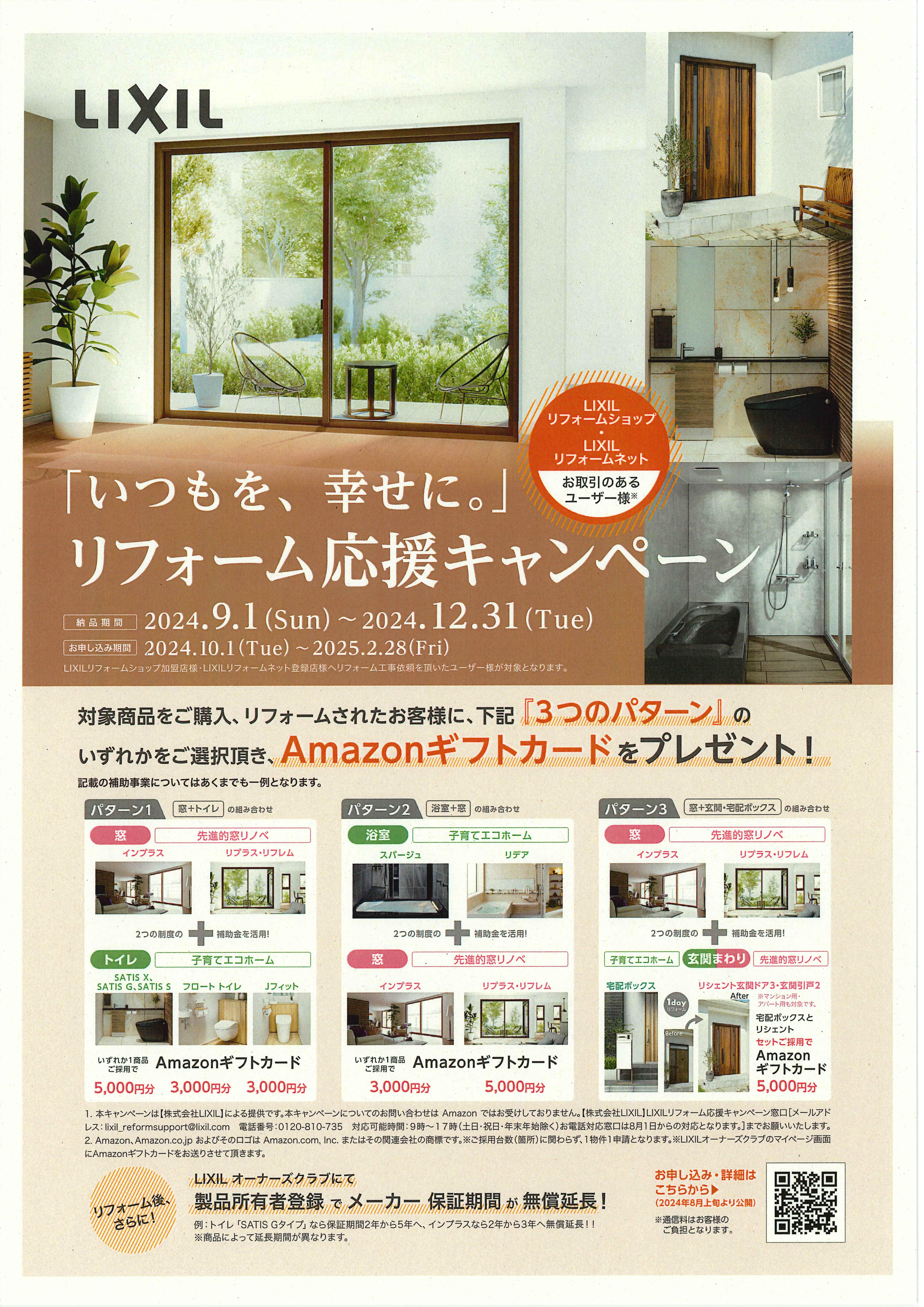対象商品をご購入,リフォームされたお客様に下記『3つのパターン』のいずれかをご選択いただき、